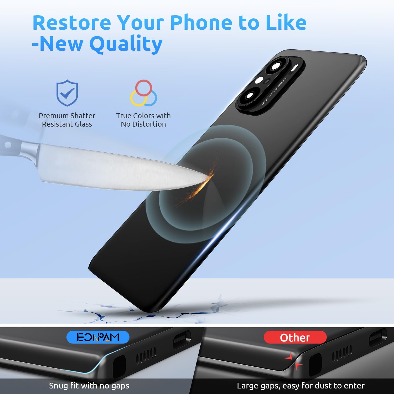 Back Glass Cover Assembly for Xiaomi Poco F3 (all versions). This Part will Fix Common Problem of the Damaged or Cracked Rear Cover Glass for Your Device. Pre-installed Camera Bezel + Camera Glass Lens Extra Adhesive Sticker Preinstalled. Comes with 1 Set of Prying Tools: 1 x Professional Opening Tool made from thin Spring Steel 1 x Plastic Spudger 1 x Thin PVC Separator Card 1 x Suction Cup 1 x Plastic triangle separator 1 x Alcohol Prep-pad Warm Tips: 1. We provide 12 months warranty for the back cover battery door replacement. Feel free to contact us if you are not 100% satisfied with it. 2. Instructions are NOT included however multiple videos are available on YouTube. The hardest and most time consuming part is taking the old glass off, which was maybe 5-10 minutes. Putting this back on was a breeze. Enjoy the fun of DIY. 3. Please power off your phone before replacement. 4. A heat gun or a hair dryer would be helpful while disassemble the back glass. Notice: Opening Phone Will Compromise Its Waterproof Seals and Warranty. Professional Installation is Highly Recommended to Replace this Part. For DIYer, Please firstly watch videos on YouTube,ensure you can do it before starting. Eanpam Will Not Take Responsibility for any Damage to Your Device that may Occur. Package Includes: 1 * Back Glass Assembly Replacement for Xiaomi Poco F3. 1 * Professional back cover removal tool set