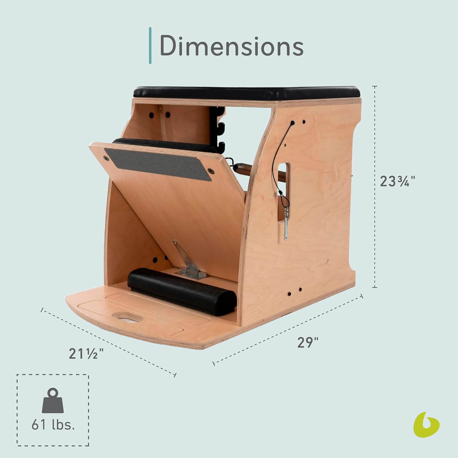 The perfect Pilates exercise training tool for home use, our Wunda Chair delivers an effective full-body workout that builds core strength, conditioning, and balance for all ages and fitness abilities. Each Wunda chair is a powerful exercise tool with a space-saving profile to help you maximize your workout in a limited space. The chair features 2 springs with 4 resistance positions per spring, secure cutout hand grips, a Cactus Resistance System, and a single padded step. This chair also grows with you. You can start with a basic Wunda Chair and then add optional handles and a high back as you progress, or you can add optional cushions and flip it to use it as a small-scale chair. With its versatile design, our Wunda chair is a valuable addition to any home gym or Pilates studio.The Balanced Body Wunda Chair with High Back and Handles offers a premium Pilates experience and enhanced stability, comfort, and versatility. Crafted with durability in mind, the Wunda Chair features heavy-duty vinyl upholstery that resists wear and tear. It features premium padding and no sharp edges for increased comfort and offers 2 springs with 4 positions per spring for a total of 8 resistance levels. It has a padded upholstered seat and a foot alignment platform to further enhance your practice. This exercise equipment is an essential tool for anyone looking to deepen their Pilates practice and offers maximum support and safety for every movement.The High Back is made from durable maple wood and provides additional support for a wide range of exercises, promoting proper alignment and making it ideal for both beginners and advanced practitioners. The chair handles provide extra stability and support. Made from round heavy tubing, these foam-padded handles are engineered for minimal flex and zero rattle, ensuring a secure grip during even the most intense workouts. The Handles lock into 4 different positions and can be easily removed when not in use, allowing for a fully customizable Pilates experience. Balanced Body has always believed that mindful movement in activities and exercises like Pilates changes the lives of men and women. Our passion for positive change has resulted in our becoming the world’s largest provider of Pilates home fitness equipment and education. From experienced instructors to first-timers, we want everybody to realize the amazing benefits of this remarkable exercise and other mind-body exercise methods. From equipment to education to videos, we want to make sure you have exactly what you need to make a healthy change in your life. Select from Balanced Body’s extensive line of Pilates products to aid you on your Pilates journey, no matter your skill level.