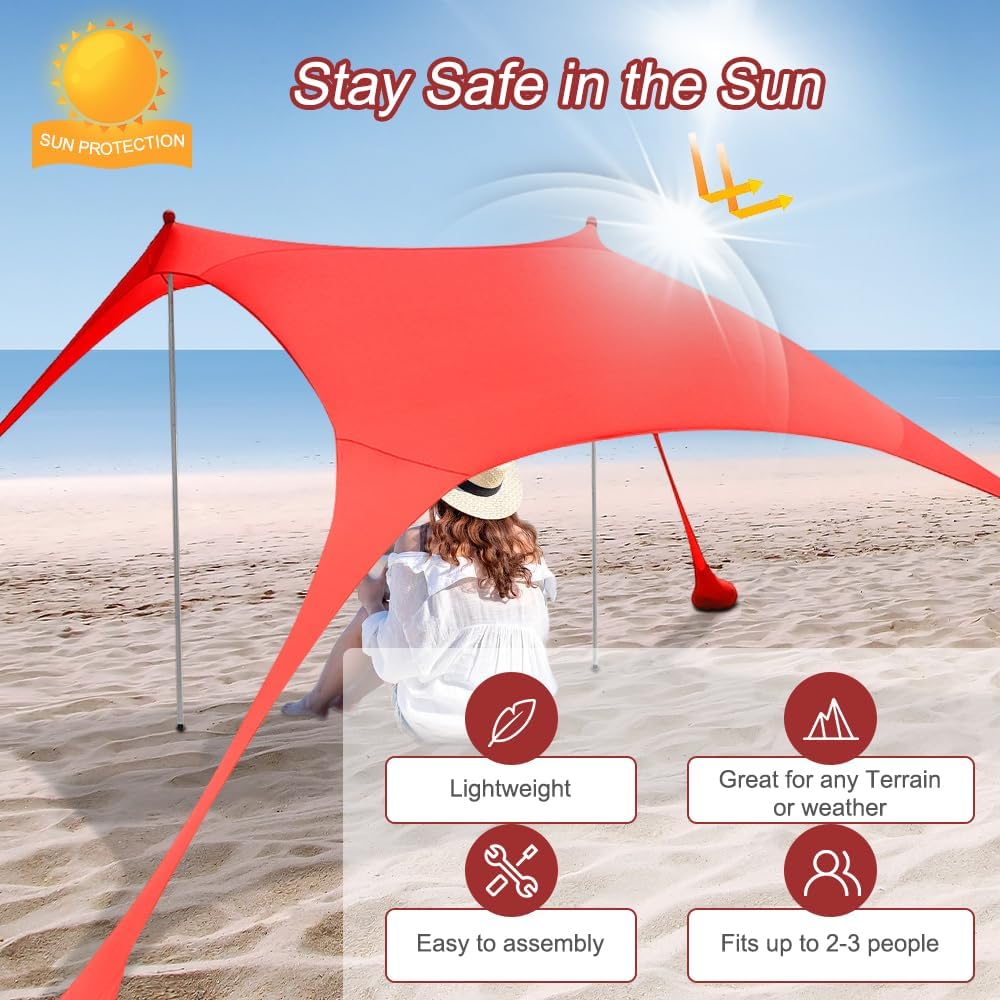Description Want to have a great time outdoors with your friends? This beach tent may be able to do it. It's not just a piece of equipment but also an attitude for the good life, leading you to an outdoor world of endless possibilities and inspiration. Whether you want to fly to a coastal paradise, go camping, or picnics, it does it all with ease, making it easy to enjoy your outdoor time. Details EVA Support Balls: They will not scratch the tent surface and make it easier to fix. Fine Stitching: The finely stitched edges allow for higher durability without easily breaking while improving the texture of this product. Sand Shovel: It can be used to fill the four corners with sand for the next step in the installation. Application It can be used at the beach, camping, fishing, backyard, picnic, and lawn, suitable for outdoor gatherings with family and friends. Specifications Color: Red Style: Modern Material: Polyester Fiber, Aluminum Mounting Type: Freestanding Assembly Required: Yes Recommended for Use: Outdoor Capacity: 2-3 People Care Instructions: Hand-wash, Machine(Only for Tent) Beach Tent Top Size: 2*1.6m/6.56*5.25ft Beach Tent Max. Length(Expanded): 4.877m/16ft Rod Folded Length: 41cm/16in Storage Bag Size: 58*8cm/22.83*3in Package Size: 45*18*14cm/17.72*7.09*5.51in Gross Weight: 1.5kg/3.3 lbs Package Included 1*Beach Tent 1*Sand Shovel 1*Storage Bag 2*Aluminum Rods 2*Binding Straps 4*Ground Spikes 1*English Manual Notes 1.Please note that only the tent is machine washable. 2.Please note that this product is intended for outdoor use only. 3.Please note that this product is not flame retardant and should be used away from sources of ignition. 4.Please read the manual carefully before installation and use, and pay particular attention to the safety instructions included. 5.Please allow the slight color difference caused by the shooting light and 1-3cm error due to manual measurement, and make sure you do not mind before ordering.