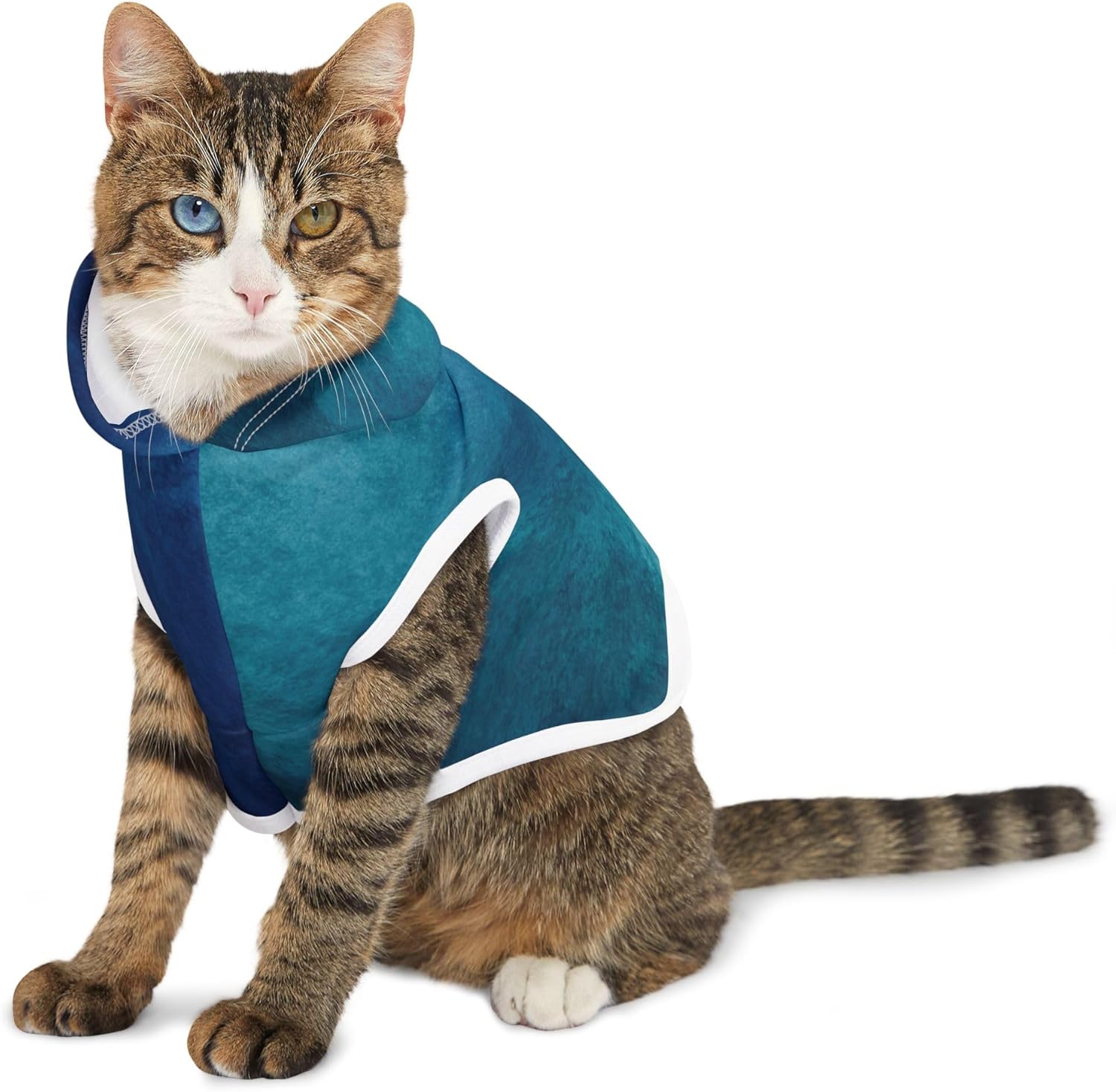 Blue Haz Pet Hoodie is a custom-made pet hoodie made of 100% soft polyester, available in 5 different sizes. The blue design gives a fun and fashionable vibe to your furry friend's wardrobe, perfect for pet lovers celebrating their four-legged companions. Product features - Choose between black or white rib color option - Extremely strong and durable fabric - Quick-drying material - ½ inch folded edge for a clean finish - Assembled in the USA from globally sourced parts Care instructions - Machine wash: cold (max 30C or 90F) - Do not bleach - Tumble dry: low heat