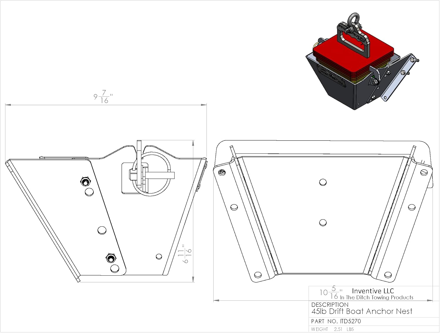 We designed this anchor nest to hold your Fish Fighter 10-45lb Variable Weight Drift Boat Anchor. This Anchor nest is the perfect way to secure your anchor safe and secure. The Fish Fighter Products Anchor Nest is built right here in the USA. Made from Marine Grade Aluminum it will last for decades if not century’s. With the Fish Fighter Anchor nest you can lock your anchor in and keep it safe while traveling down the road, or those nights when you leave your boat in a motel parking lot. We wanted you to have lots of mounting choices so we include different mounting brackets with your Anchor Nest. You can mount the Anchor Nest on your trailer tongue, or mount it to the transom. If you don’t want to bolt the Anchor Nest to your boat or trailer, we also include mounting feet so you can easily store the Anchor Nest under a seat or just set it on the Floor of the Boat. Many or our customers will mount one Anchor nest to their trailer tongue and one to the transom of their boat. That way the anchor is not adding weight to the transom causing possible damage to your boat when traveling down the road. Wherever you mount your Fish Fighter Products Anchor Nest your Anchor will be safe and secure secure. With Each Anchor Nest you get. - Lockable Anchor Nest with Locking Clip. (Pad-Lock not included) - Trailer Mounting Brackets and Bolts for Trailers with Max Trailer Frame of 2”x 4” - Deck/Floor Mount Brackets with Rubber Feet Pads (Can also be Bolted to flooring) - 60 Degree Angle Brackets for Angled Transoms - 90 Degree Brackets for Straight Transoms