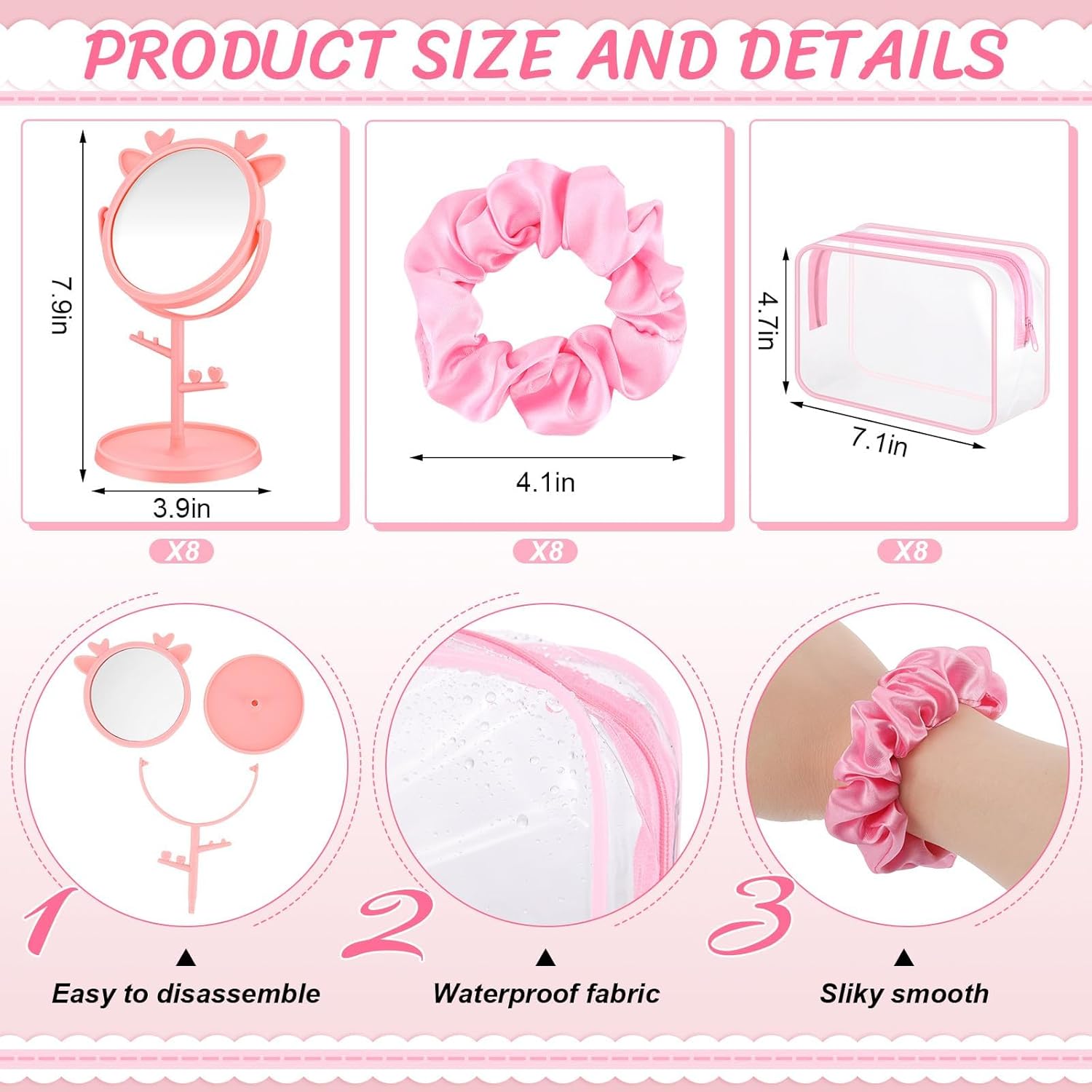Features: Classic style: Whether it's a sleepover or a bachelorette party, our sleepover party kits cater for many one; They're ideal for most occasion and to create long lasting memories and bring a touch of sophistication to your event. Wide usages: Our girls spa sleepover party supplies are ideal for more than just sleepovers; These versatile accessories also suitable skincare, beauty, and spa parties; Not just that, you can also include them in a variety of party games, such as blindfold games, eye care activities, role play, meditation, and many more; With all these distinct features, your guests will surely have a memorable experience. Specifications: Size: as pictures shown Material: velvet Color: as pictures shown Package includes: 8 x Sleepover Party Supplies Set Note: The colors may exist slight difference due to different screens. Manual measurement, please allow slight errors on size.