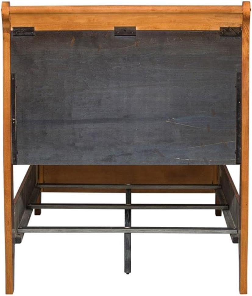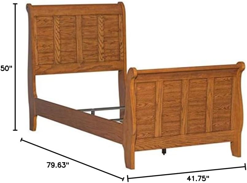 Rustic American Bedroom Design with Wood & Peg Accents Give a Craftsman Feel. Aged Oak Finish and made of Select Hardwoods & Ash & Oak Veneers. Cases feature Full Extension Metal Side Drawer Glides, French & English Dovetail Construction and Antique Brass Knob Hardware.Features:- Finish: Aged Oak- Style: Traditional- Rustic American Bedroom Design- Materials: Select Hardwoods & Ash & Oak Veneers- Wood & Peg Accents Give Craftsman Feel- French & English Dovetail Construction- Complete Dust Proofing- RTA Headboard- Box Spring RequiredSpecifications:- Overall Product Dimensions: 50" H x 41.75" W x 79.63" D- Overall Product Weight: 108 lbs