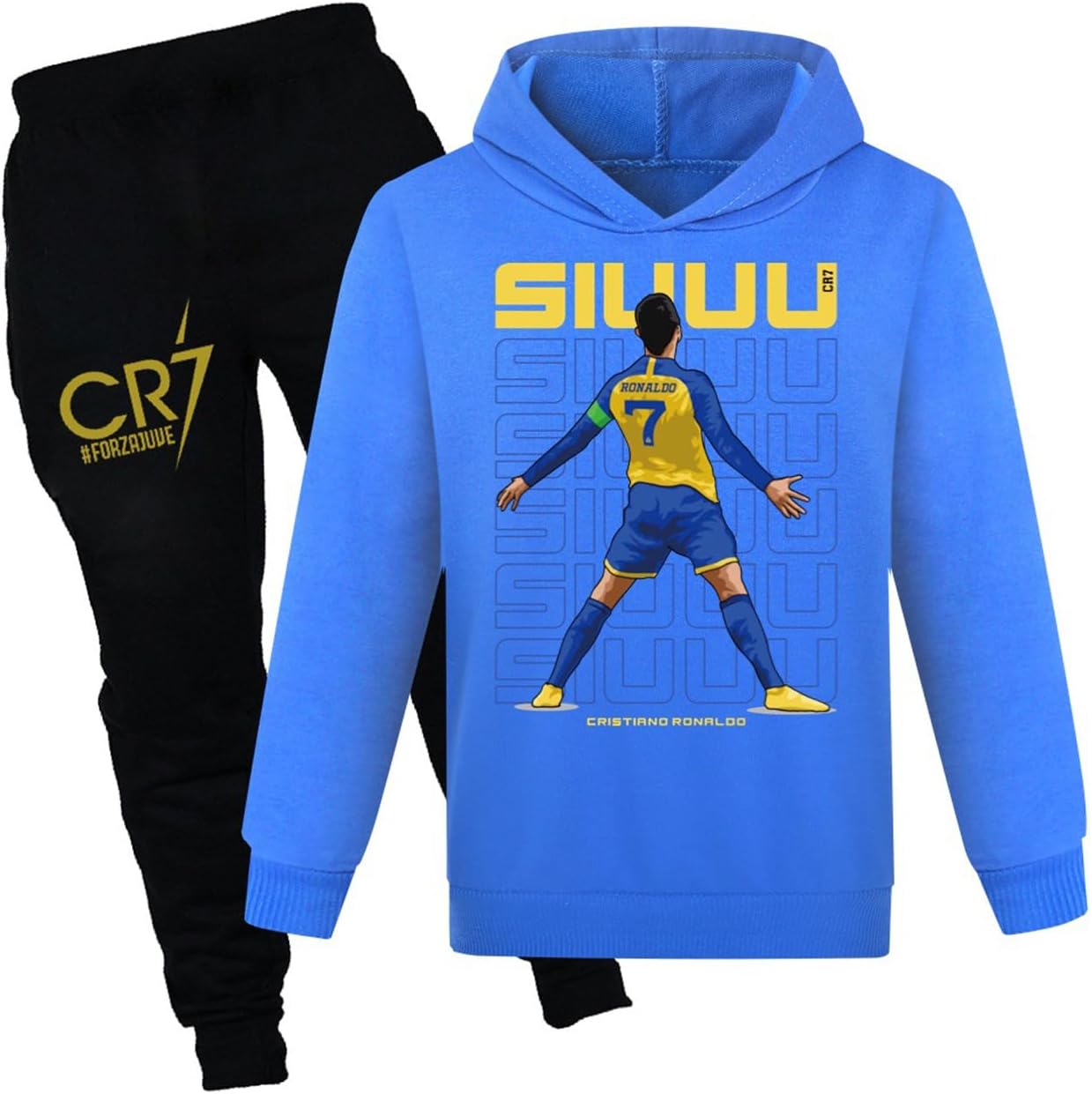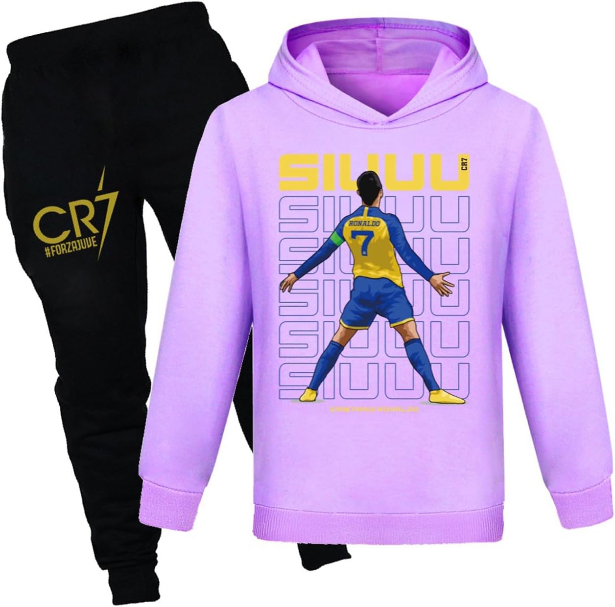 Featuring a hoodie and sweatpants, this outfit is perfect for active kids who love sports. The hoodie showcases the iconic #7 jersey number, paying homage to legendary soccer players. Set Include: 1Pc Kids Sweatshirt, 1Pair Pants.