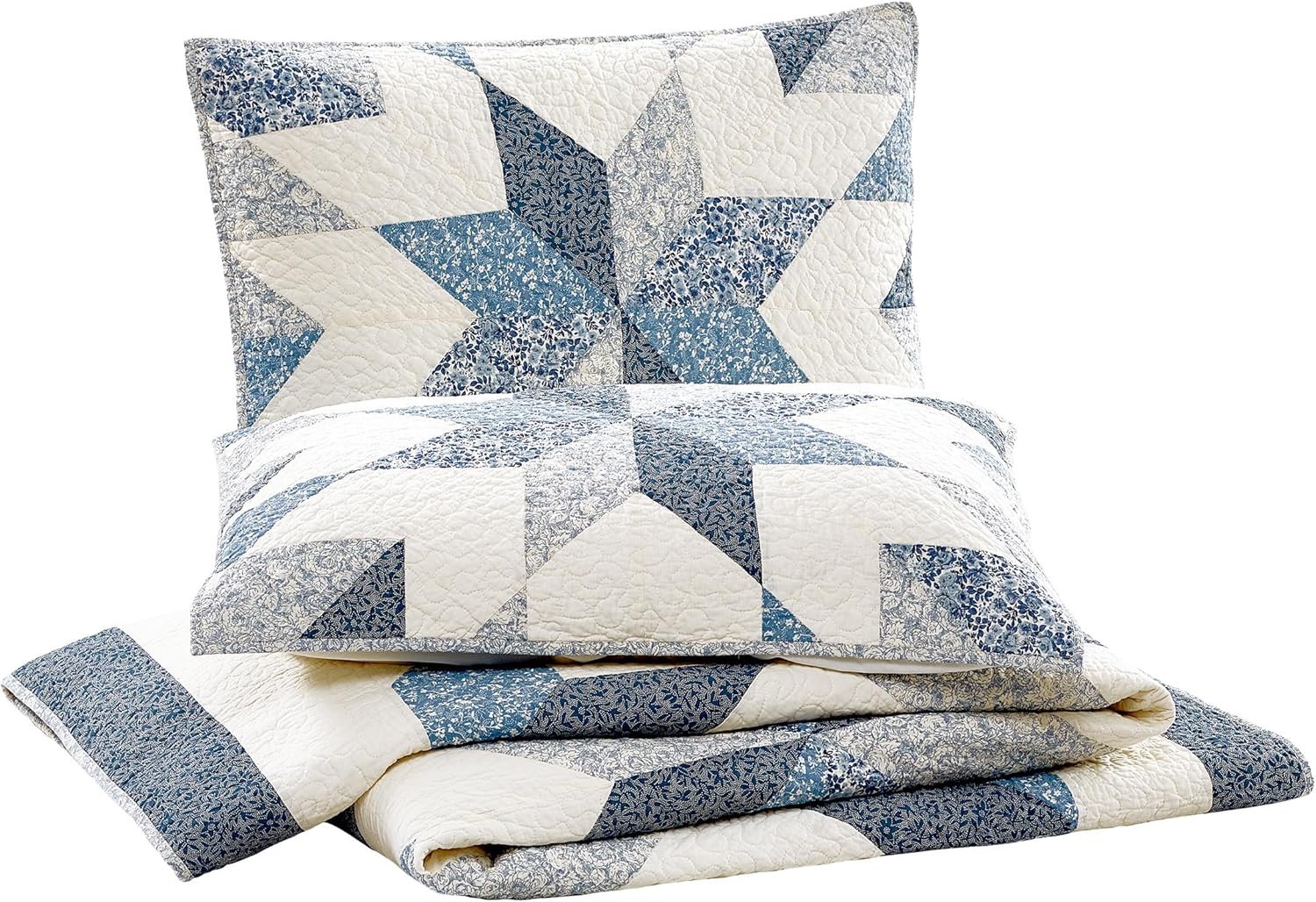Bring timeless charm to your bedroom with this stunning patchwork quilt set. Featuring a beautifully crafted cotton face and cotton fill, this lightweight quilt set is designed for year-round use. The intricate patchwork design showcases a striking star pattern in soothing blue tones, adding a touch of elegance to any decor. Backed with soft microfiber for extra comfort, this quilt is as cozy as it is stylish. It is also machine washable for easy care and low maintenance.