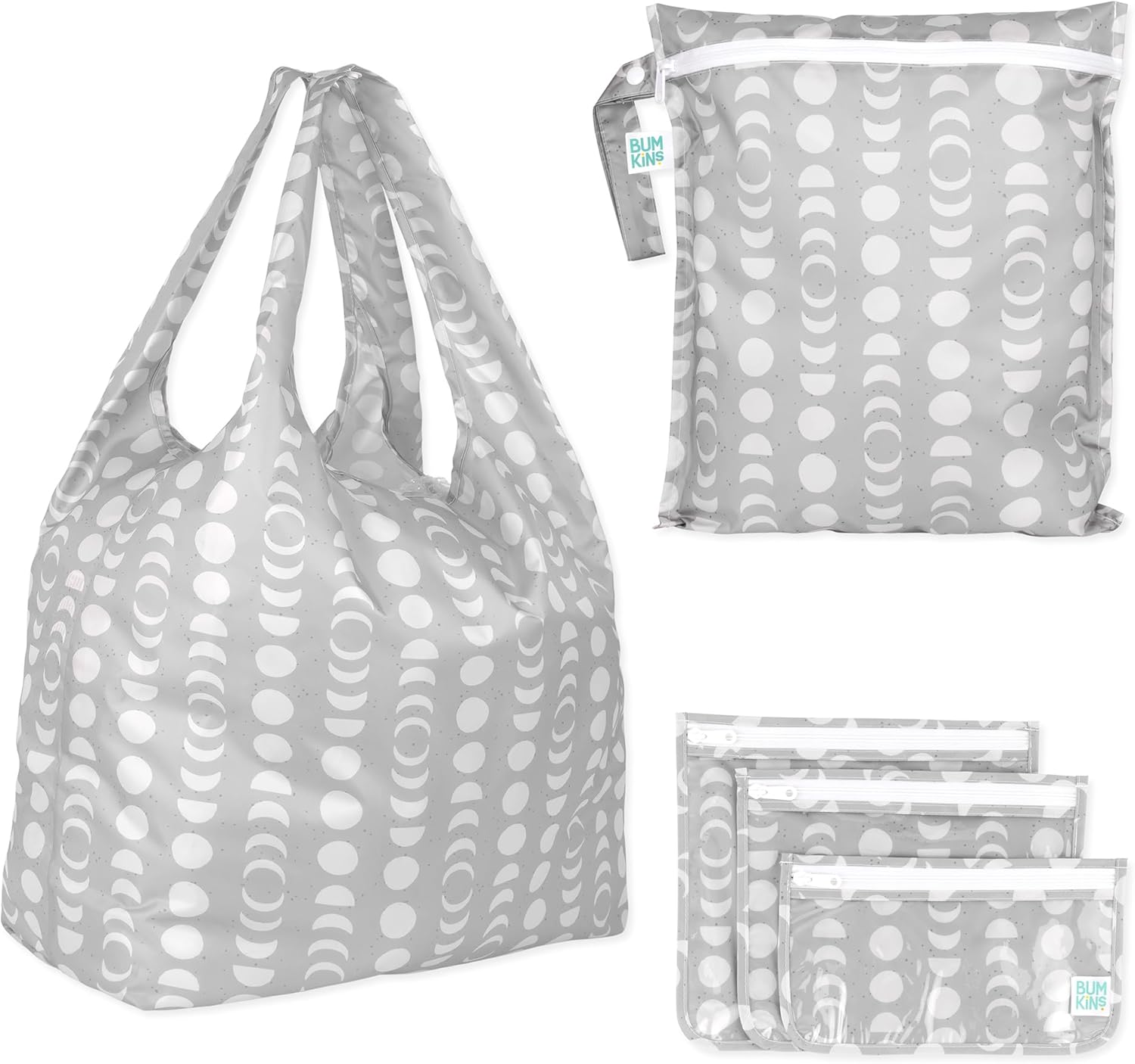 The reusable Packable Tote Bag is a smart alternative to single-use bags, replacing 2-3 plastic bags. The large bag is perfect for carrying everyday essentials. It’s a must-have for running errands, farmer’s market hauls, getting groceries, heading to yoga class, the gym, and more. Bumkins’ original fabric is water resistant, quick-drying, and easily wipes clean, making it great for outings at the beach, park, picnic, and pool. Two handles can snap onto each other, creating one comfortable and sturdy shoulder strap. An interior pocket can hold a phone, keys, or sunglasses. Made from polyester, the bag doesn’t take up space, so you can easily stash it into a purse, backpack, and luggage; it can fold or lay flat when not in use. The bag can be neatly tucked into its own pocket, helping you to keep things stored and organized.Machine washable. To extend the life of the waterproof fabric, we recommend hang drying. Pocket measures 7.5 in x 5.5 in (19 cm x 14 cm). Tote measures 25.5 in x 15 in (65 cm x 38 cm). We use third party labs to ensure the products we manufacture comply with CPSC and CPSIA standards for BPA, Lead, and Phthalates.