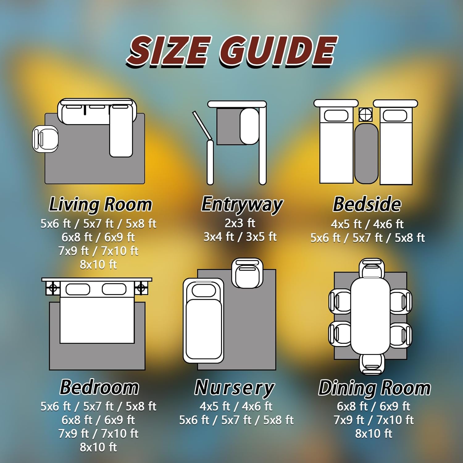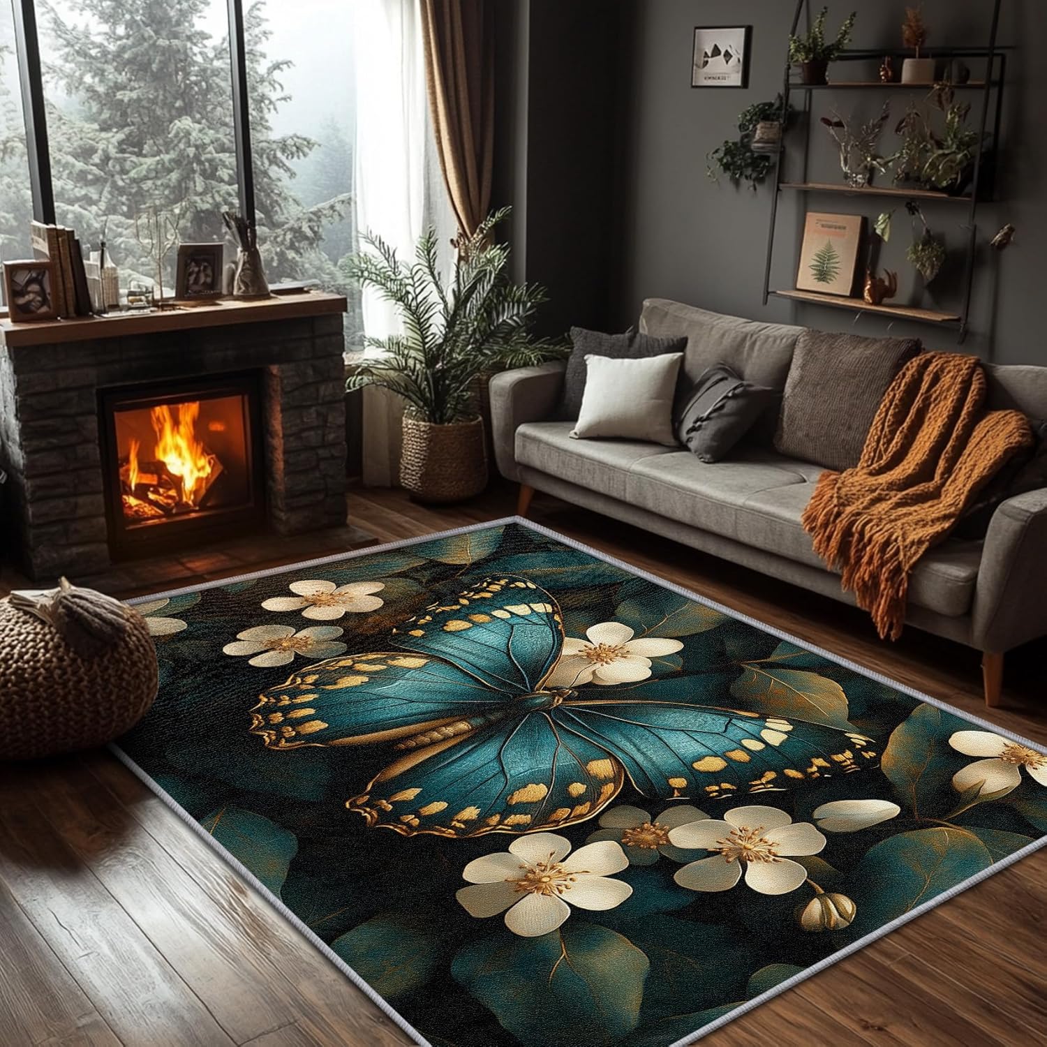 Butterfly Rug & Home Decorations 2x3 area rug / 60x90 cm Features Super Soft Area Rug Ultra soft and luxury to the touch, this lightweight floor carpet is made from skin-friendly, safe and kid friendly materials to pamper and relax your feet Upgraded Non-slip Bottom This alfombras feature a dense and durable TPR rubber backing that help increase friction with the floor and prevent sliding Room Decor Say goodbye to boring plain carpet and decorate your room with this excellent printed alfombra Perfect for livingroom, bedrooms, classroom, guest room, hallway, home office, kitchen, laundry room, study room and so on Well Made This machine made rug is tightly woven and has neat edge, making it more durable Our carpet adopts advanced 3d digital printing technology with clear pattern, high color fastness and no fading Pet Friendly Cats and dogs will also love this comfortable area rug because of the quality fabric choice Easy To Clean For partial cleaning, just wipe with a damp cloth or low frequency vacuuming For Integral cleaning, we recommend that you machine wash / hand wash it with room temperature water, then air dry Customer Service If you have any questions about our products, please feel free to contact us, we have professional customer service staff to serve you