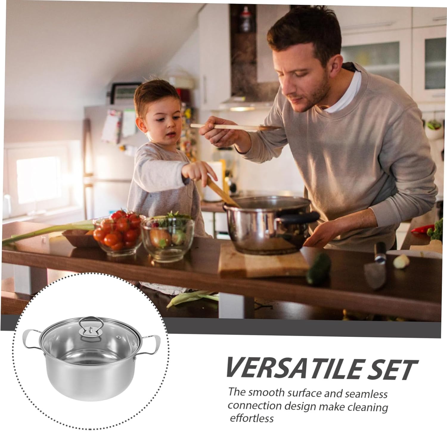 Package List 1 x frying pan 1 x 1 x soup pot Characteristics -Material:Stainless steel kitchen cooking pot -Size:33.00X18.00X8.00cm/12.97X7.07X3.14in( ) cooking pots with lids -Color:Silver small saucepan -Size:29.00X21.80X10.00cm/11.40X8.57X3.93in(soup pot) soup pot -Size:38.30X22.70X4.50cm/15.05X8.92X1.77in(frying pan) cooking pot -The handle design of this cookware set can provide comfortable grip for easy handling in daily using pot with lid. -Stainless steel construction design, healthy, cooking, ensuring optimal heat absorption, durability stock pot. -This cookware set is exquisitely crafted and and is widely loved by people, widely used stainless steel soup pot. -Made of stainless steel construction durability and longevity of this convenient cookware set metal pan. -The interior is smooth surface design for easy cleaning, this cookware set can give you convenience sauce pan with lid.Goods Informationsoup pan Portable design, easy to carry for anywhere.non stick cooking pan This is a multi-functional home or restaurant Stainless Steel cookware set, which is made of for durability, nonstick and easy to clean.stock pot With a creative design and functionality.pot with lid This household cookware set is made of sturdy material, and sturdy