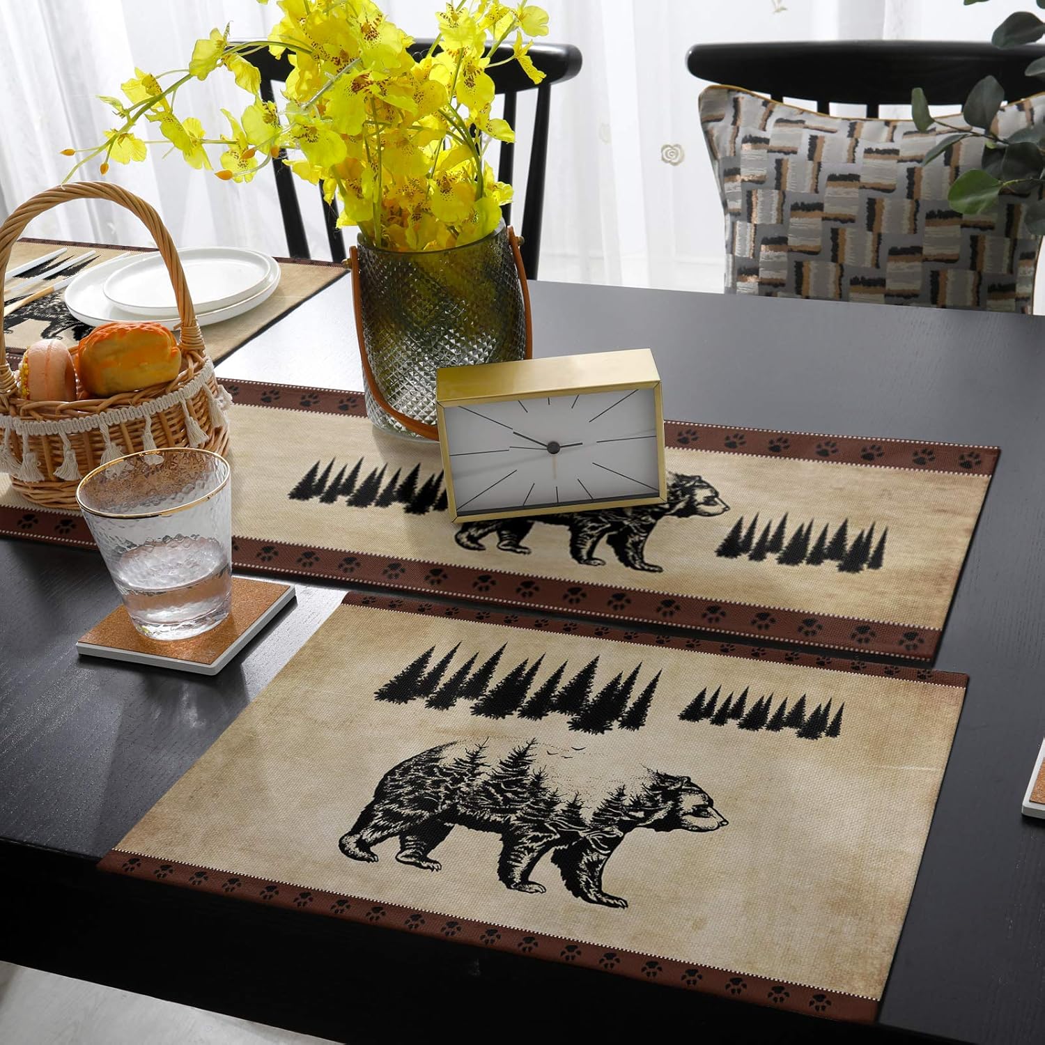 Table Runner and Placemats Set Easy to replace and take care. Have a good function of practicability and decorations.placed under fairly hot pot on dining table and often moving objects in the kitchen to avoid the desktop scratches. The placemats are practical, and you can use it on dinner hall, kitchen, hotel, business office everyday. Beautiful table decoration,can impress your guests; Perfect for both indoor and outdoor,add visual interest to dinner desk, pleasing to your eyes; Long service time, meet your different needs. 📏Size: 📏1 Table Runner: 70x13 inches/90x13 inches/72x16 inches 📏Placemats: 13x19 inches Easy to clean and maintain: When the food is sprinkled on it, you can gently wipe the surface with a wet towel, or soak it in warm water and dry it naturally. After use, you can roll them up and put it away, there will be no creases when you use it again. ❗Tips: ❗Don't clean it by machine, wipe clean with a piece of wet cloth or sponge, use soft brush to clean with soapy water directly to remove stubborn stains. ❗Never put it into microwave. ❗If there is a crease on it, just soak it in hot water or put heavy books on the crease for hours to flatten it out.