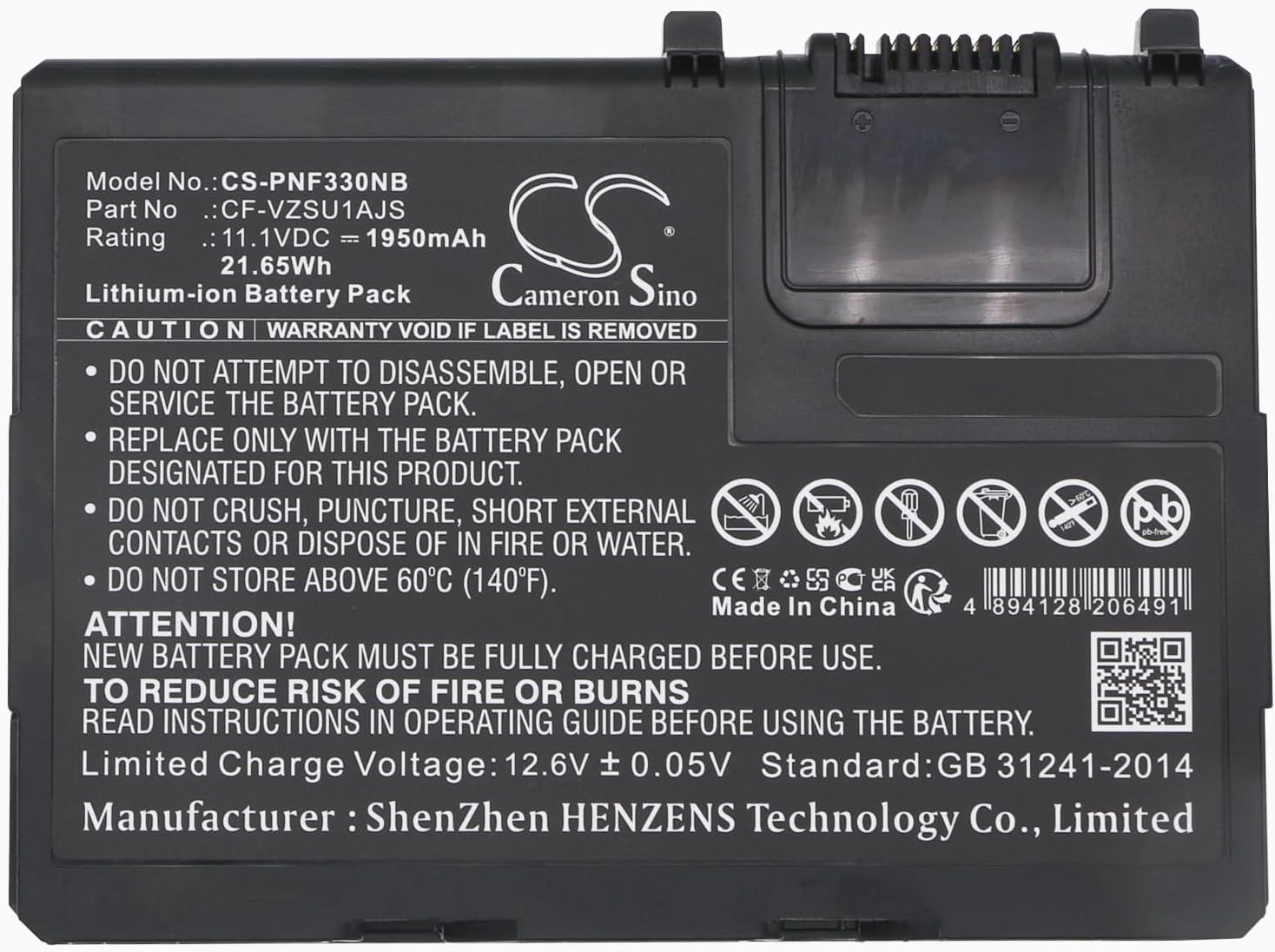 Fit Modelrfor :Panasonic Toughbook CF-33, Toughbook CF-33AEHFATG, Toughbook CF-33AEHFZTG, Toughbook CF-33AEHFZTN, Toughbook CF-33AEHGATG, Toughbook CF-33AEQGATG, Toughbook CF-33LEHFAT3, Toughbook CF-33LEHGAT3, Toughbook CF-33LEQGAT3, Toughbook CF-33mk1Part Number for:Panasonic CF-VZSU1AJS, CF-VZSU1AR, CF-VZSU1AWNotice Before PurchaseBe carefully check the model number of your device and the part number of your original Battery to see if this Battery is compatible with your device.A new battery will achieve its best performance after 2 or 3 complete cycles of charge , discharge.When you install it, be sure the connector has been properly connected to your device.Do not use low quality third-party adapter charger to charge your device, that will shorten the battery's life.