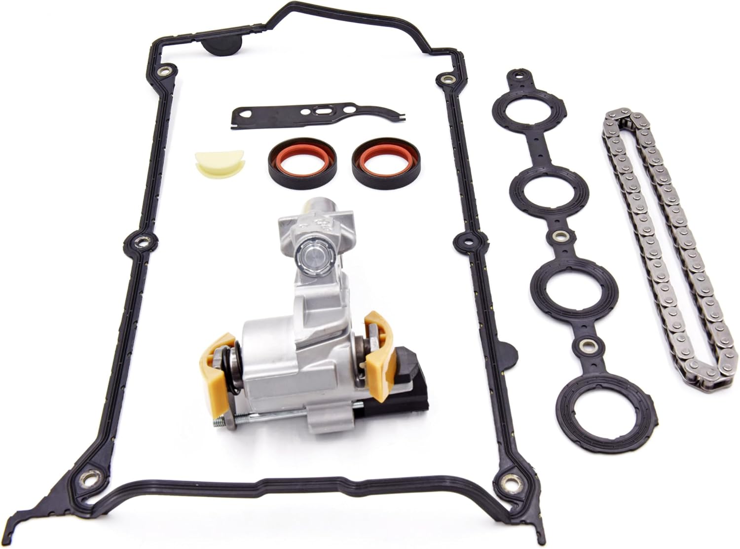 Replace Part#: 058109088K 058109088D 05810088E 18-336B 2T1171 510-527 590-1162 7V9000 917021 S29001 TS1171 VTS1025 VVS143 Fitment/Compatibility: Replacement for Audi Audi A4 2001-2006, A4 Quattro 2001-2005, TT 1.8T 2001-2006, TT Quattro 2001-2006 Replacement for VW VW Beetle 2001-2005, Golf 2001-2003, Jetta 2001-2005, Passat 2000-2005 Package Includes: 1 x Timing Chain Tensioner 1 xTensioner Gasket 1 xTiming Chain 2 xSeal
