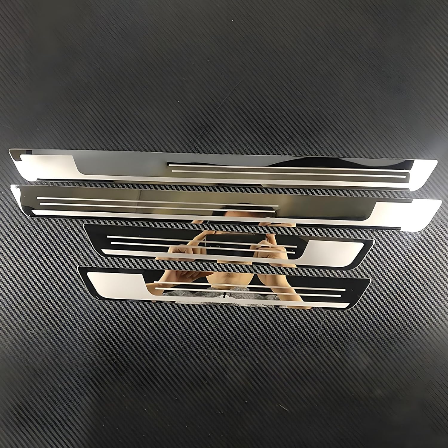 Upgrade your vehicle's interior with these premium Stainless Steel Door Sill Protectors. Combining functionality with style, these guards provide a robust barrier against daily wear and tear while adding a touch of luxury to your car's entry points.SpecificationsMaterial: High-quality Stainless SteelColor: Silver with Black AccentsFront Door Size: 19.68 x 1.49 inches (50 x 3.8 cm)Rear Door Size: 10 x 1.49 inches (25.5 x 3.8 cm)Package Includes: 4 Pieces (2 Front, 2 Rear)Key FeaturesDurable Construction: Built to withstand stepping, scuffing, and weather elements without rusting or fading.Scratch Protection: effectively protects the vulnerable door paint from shoe scuffs and scratches.Stylish Look: The sleek mirror finish with stripe details enhances the texture of the car interior instantly.Installation NotesClean: Thoroughly clean the application area with alcohol or water to remove dust and grease. Ensure the surface is completely dry.Position: align the product to the exact position on the door sill to check the fit before removing the tape.Stick: Peel off the adhesive backing film, place the protector carefully, and press down firmly for 1-2 minutes to ensure a strong bond.Tip: In cold weather, slightly heat the adhesive with a hair dryer for better stickiness. Do not wash the car or expose it to water within 48 hours after installation.