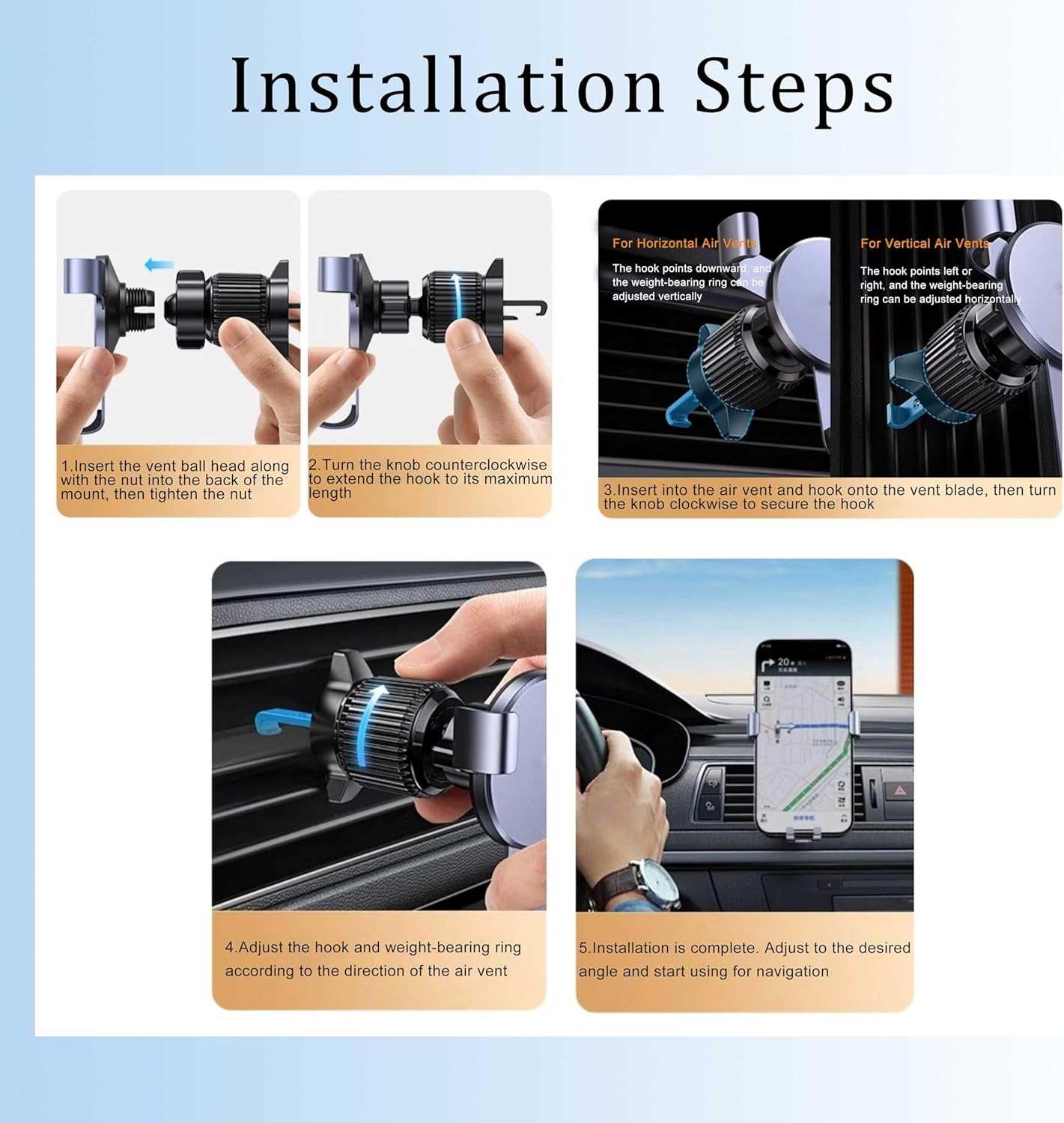 With years of experience in auto parts sales, we focus on providing reliable products that customers can rely on🌈 SpecificationApplicable Models: Car Phone Holder for AAADimensions: See product images for detailsColor Options: See product images for details🌿 Features🔺Compact & Air-Friendly: This vent car phone mount is compact and unobtrusive, allowing air to flow freely through your vent. The gravity car phone holder design lets you adjust angles up/down or left/right for a safer driving experience🔺Stable Hook Design: The hook-style car vent phone mount grips vents securely, preventing wobbling or sliding, keeping your device stable even on bumpy roads🔺Hands-Free Convenience: This hands-free vent phone holder allows quick one-handed insertion and removal, perfect for navigation, calls, or music control without distractions, keeping your phone secure and easily accessible at all times🎁 Packing List1 × Cell Phone Car Holder🙌 InstallationSlide the hook-style car vent phone holder onto your car’s vent, adjust the angle as needed, and place your smartphone into the vent phone mount. It automatically grips for secure, hands-free use⭕ NoteColors may slightly vary due to different lighting or screen settingsManual measurements may vary by 0.5–1 inch🧡【Customer Service】: Please check whether this item fits your car before purchasing. Feel free to contact us with any questions or concerns. We will reply you as soon as possible and promise you satisfactory customer service