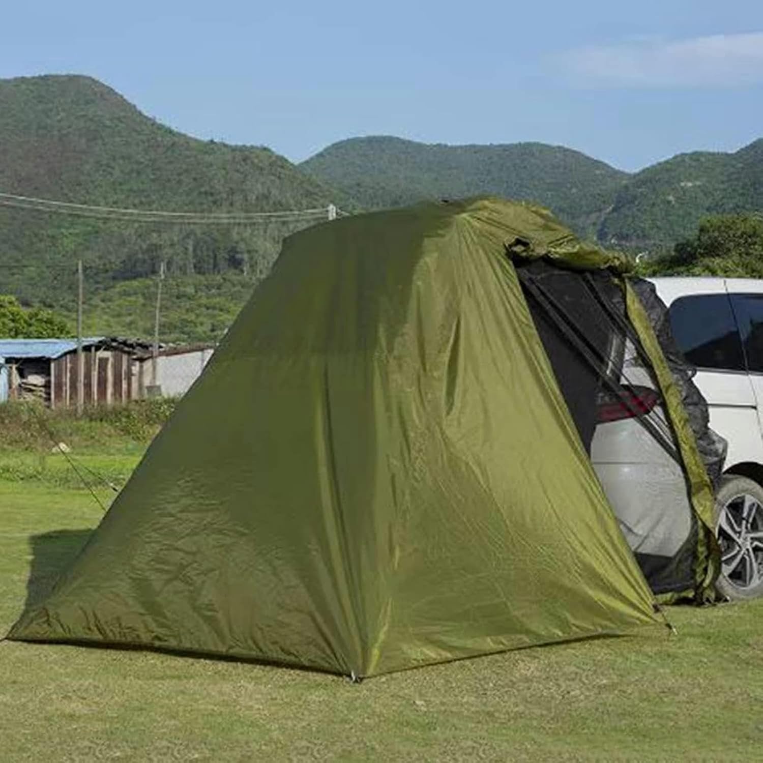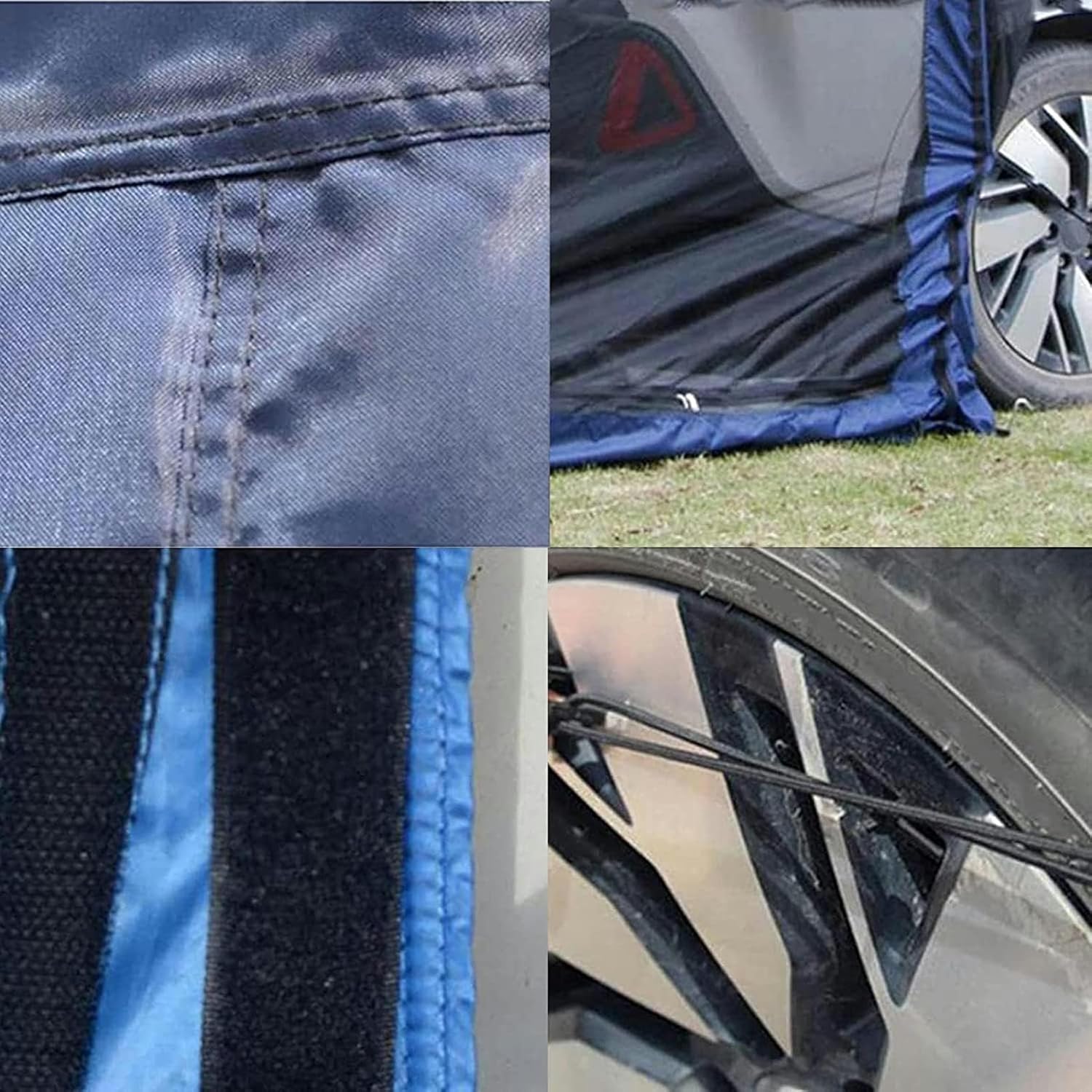 Car Rear Tent Pop Up Car Tailgate Canopy Sun Shade TentFeatures:In order to increase the adhesion fastness between the inner account and the outer account of the car, a whole strip of nearly 6 meters of is used for bonding.Pop-up design and portability, unfold and fold in a few seconds without assembly.Durability and water protective has been highly improved.Provide people with a spacious interior space. The large entrance and large rear door provide 360 degree ventilation for better body temperature and fresh air.SpecificationName: Car Tail TentSize: 245*200*220cmColour: Blue, GreenOuter tent: 190T silver rubber fabric (water resistant)Inner tent: B3 black dense meshWeight: 2.9kgPacking list:1* Car Trunk Tent camping