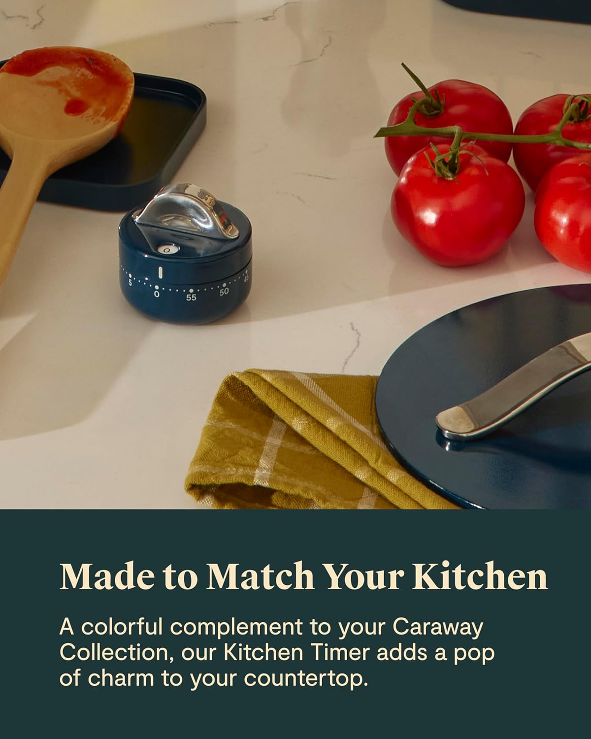 The Caraway Mechanical Kitchen Timer is designed to make keeping time feel simple, intuitive, and manageable. With a classic wind-up design and a clean stainless steel exterior, this food timer offers a straightforward way to track time-sensitive moments throughout your day, from cooking and baking to everyday routines around the home. Built to count down up to 59 minutes, the manual baking timer features large, easy-view numbers and dual side and top displays, allowing time to remain visible from multiple angles on the countertop. A sculpted handle makes winding and adjusting quick and comfortable, even when hands are wet or messy, allowing for easy adjustments during use. Beyond the kitchen, this mechanical wind up kitchen timer fits easily into daily life. Use it to track focus sessions, workouts, laundry cycles, or personal breaks anywhere in your home. Its mechanical design offers a dependable, distraction-free way to keep time without screens or digital setup, supporting a wide range of routines with ease. Crafted from stainless steel, the 1 hour timer is designed for regular use and easy upkeep. The smooth exterior wipes clean quickly, helping it stay looking neat on busy countertops. Its durable construction makes it a practical addition to kitchens, workspaces, or anywhere a reliable countdown is helpful. Designed to coordinate with the Caraway Collection, this 60 minute timer adds a subtle pop of color while maintaining a tidy footprint. The timer’s compact design makes it easy to keep within reach without taking up valuable space. When not in use, it nests neatly in the Prep Set, helping keep countertops organized and clutter to a minimum. Simple, functional, and thoughtfully designed, the Caraway Kitchen Timer fits seamlessly into everyday moments where time matters.