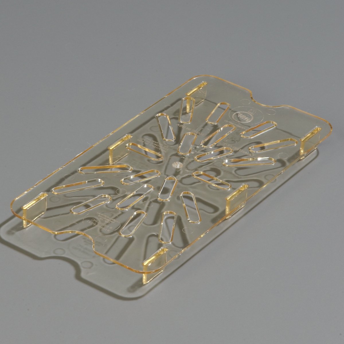 Keep your kitchen running smoothly with Carlisle FoodService Products 3089513 Polycarbonate Drain Shelf for food pans—a reliable, heavy-duty solution designed for professional food storage, prep, and service. Whether you're working in a restaurant, cafeteria, or catering operation, these drain shelves are built to handle the daily demands of commercial kitchens. Each drain shelf features a smooth interior surface that makes cleanup quick and easy, while reinforced corners help intercept chips and cracks caused by frequent drops or heavy stacking. The textured, non-slip finish on the corners, sides, and bottom not only provides a better grip but also helps resist scratches, keeping your drain shelves looking clean and professional. Made from durable polycarbonate, these drain shelves are dishwasher safe and can withstand the high temperatures and rigorous use of a busy kitchen. Plus, they’re NSF listed, ensuring compliance with food safety standards and giving you peace of mind with every use. Designed for durability, performance, and easy maintenance, these Polycarbonate Drain Shelves are the perfect addition to any high-volume foodservice environment.