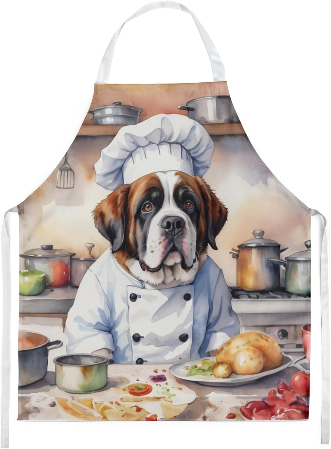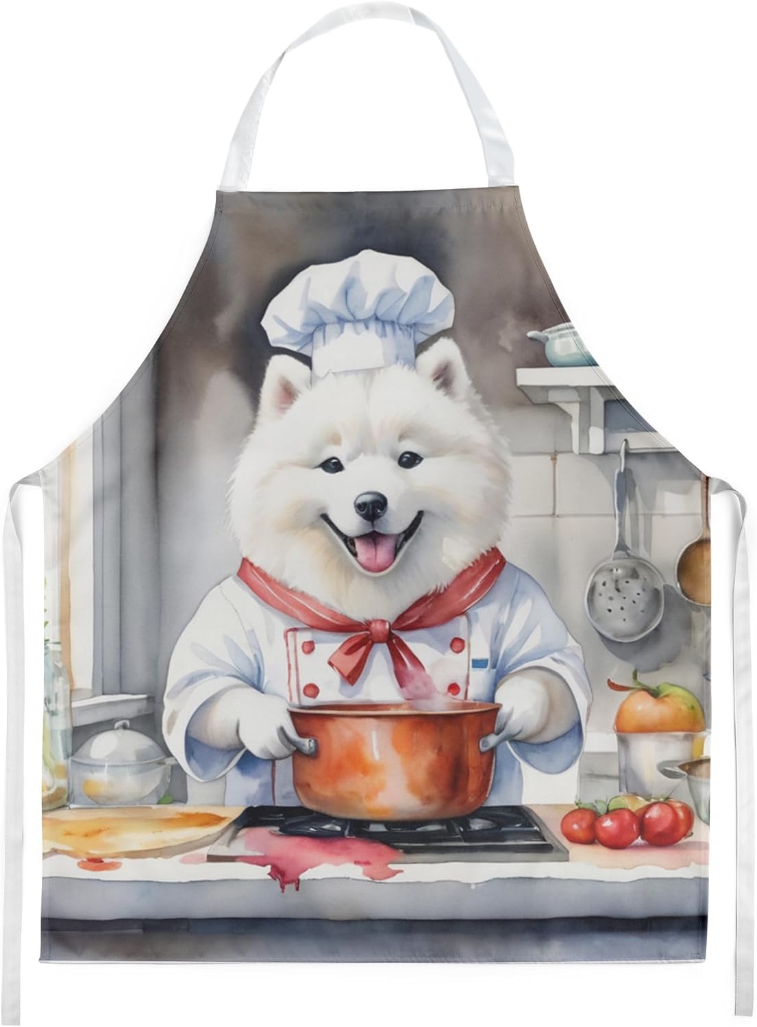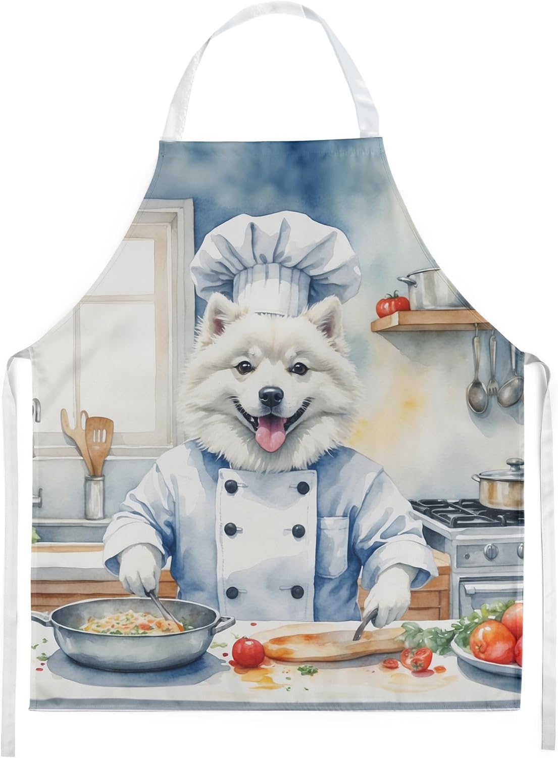 Shown here is the Norwegian Elkhound The Chef Apron from Caroline's Treasures featuring artwork of a Norwegian Elkhound in a Everyday design. The detailed illustration and vibrant colors make it a standout accent for your home. Bring culinary creativity to life with our The Chef Collection. Featuring kitchen-inspired designs that celebrate food, cooking, and playful chef-themed artwork, this collection adds personality and flavor to home décor and thoughtful gifts. Elevate your cooking, baking, and grilling experiences with our versatile Kitchen or BBQ Apron. This Bib Style apron isn't just limited to culinary activities - it also serves as an excellent baking apron, artist apron, server apron, gardening apron, or even a dog grooming apron. The apron showcases vibrant full-color artwork contributed by one of our talented artists, bringing a dash of style to your daily tasks. With dimensions of approximately 27"W x 30"H, it provides ample coverage to protect your clothing from spills and splashes. Our apron is meticulously crafted from 100% Ultra Spun Polyester, known for its durability and lightweight nature. The apron comes with white tie straps, ensuring a comfortable and adjustable fit for all. It's a perfect choice for kitchen apron enthusiasts, whether you are a woman or a man. Designed for easy maintenance, this apron is fully machine washable. The quick-drying polyester material actively reduces staining, keeping your apron looking fresh and new for longer. Our beautifully designed apron isn't just a functional kitchen accessory - it's a fashion statement in the culinary world! Norwegian Elkhounds are sturdy hunting dogs known for their endurance and independence. This ancient breed is admired for its loyalty, confidence, and alert nature. Makes a heartfelt gift for: Norwegian Elkhound owners, Dogs lovers, Everyday gifts, pet parents, friends who adore their Norwegian Elkhound, or anyone celebrating Dogs.