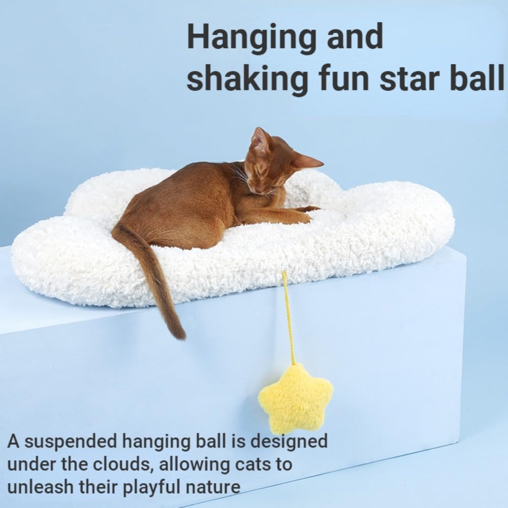 100% brand new high quality cloud shaped pet mattress Material: sheepskin + PP cotton Pattern style: clouds Features: It can be used on both sides, reducing the number of cleanings and extending the service life; it comes with a hanging cat ball, which is two-in-one rest and entertainment. Size: Leaf: 75x46x9CM, suitable for cats and dogs Notice: 1. Due to different measurement methods, please allow a measurement deviation of 1-3cm. 2. Due to different monitors and lighting effects, the actual color of the item may be slightly different from the color shown in the picture. Thank you for your understanding!