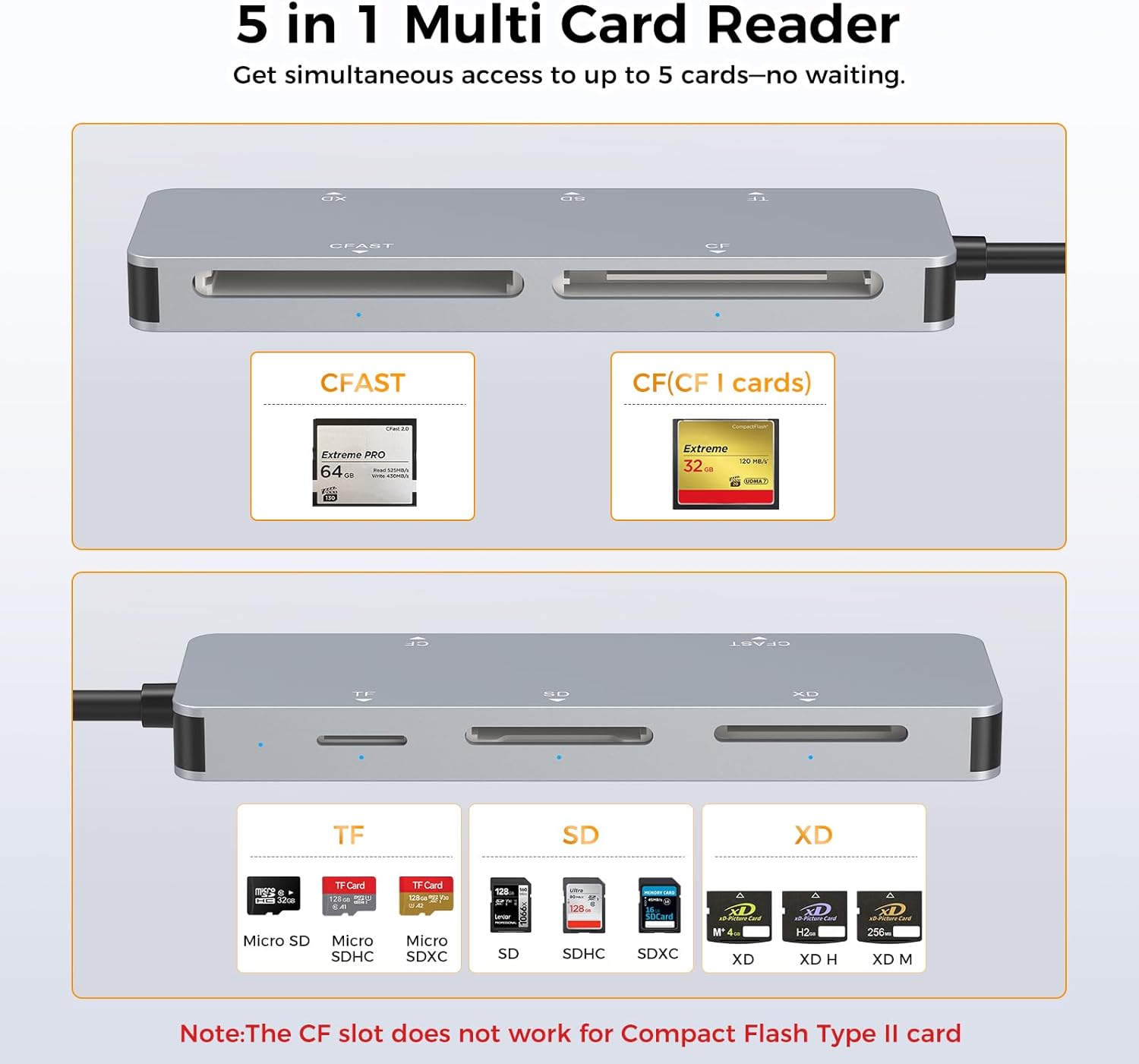 | Media Type | CFast, CFast 2.0, CompactFlash, XD Picture Card, SDHC, SHXC, SD Card, MicroSD, MicroSDXC, MicroSDHC |