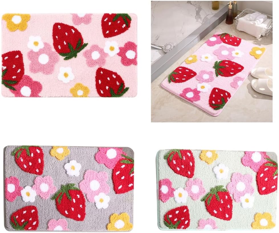 Features: Step into luxury with our Bathroom Carpet featuring a delight Strawberry Flower pattern, crafted to improve your bathroom's aesthetic while providing comfort underfoot. Constructed with soft microfiber and a not slip backing, this bath mat ensures and durability, making it a essential addition to any bathroom space. Suitable for families, especially those with children, elderly members, or pregnant women who require slip resistant protect in wet area. This colorful floor bath carpet can be placed in bathrooms, kitchens, offering a secure footing to slip and fall. Machine washable for easily care and maintenance, the bathmat retains its color and soft texture, ensuring long lasts performances. Specifications: Component:Polyester Size:Approx.45x65cm/17.72inch, 50x80cm/19.69x31.5inch,50x120cm/19.69x47.24inch; Option Type:Pk 45x65cm Carpet,Gray 45x65cm Carpet,Green 45x65cm Carpet,Pk 50x80cm Carpet,Gray 50x80cm Carpet,Green 50x80cm Carpet,Pk 50x120cm Carpet,Gray 50x120cm Carpet,Green 50x120cm Carpet, note: Please allow 1mm errors due to manual measurement. Due to the differences between different monitors, the picture may not reflect the actual item color. Package Includes: 1pc Bathroom Mat