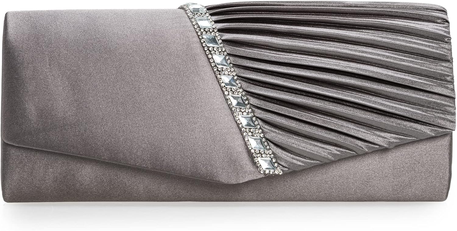 | Style Name | Crystal Embellished Half Pleated Satin Envelope Flap Clutch |