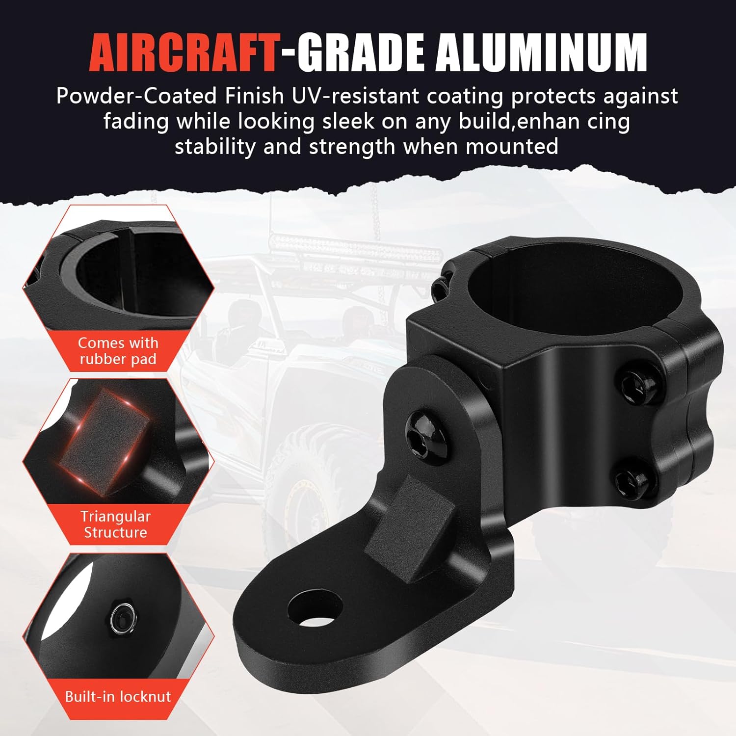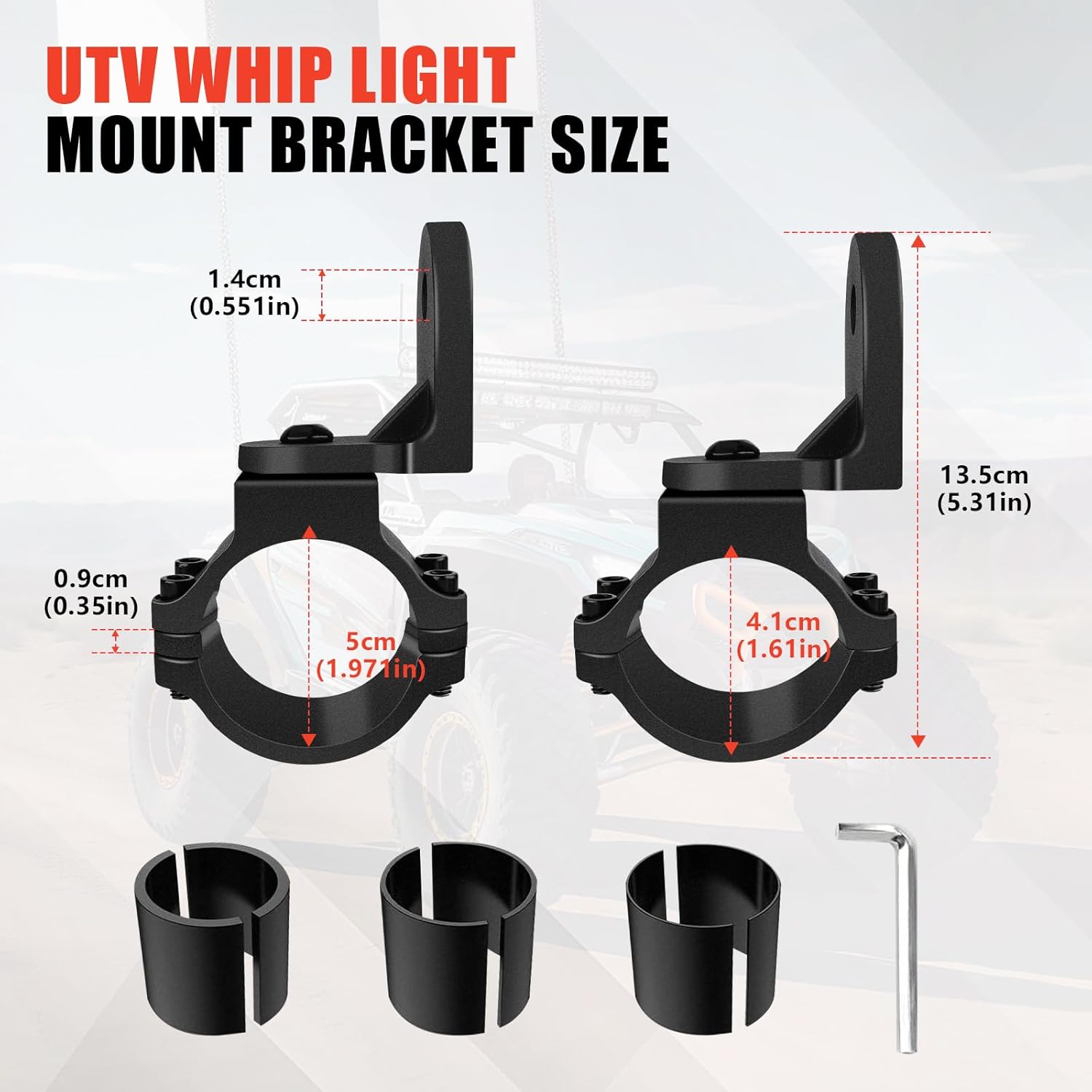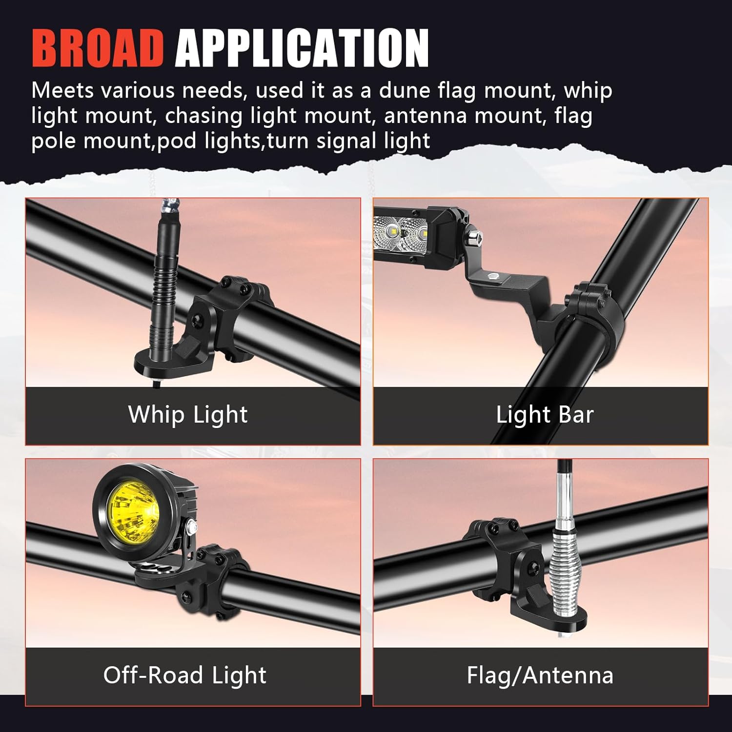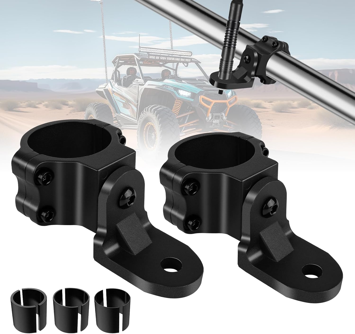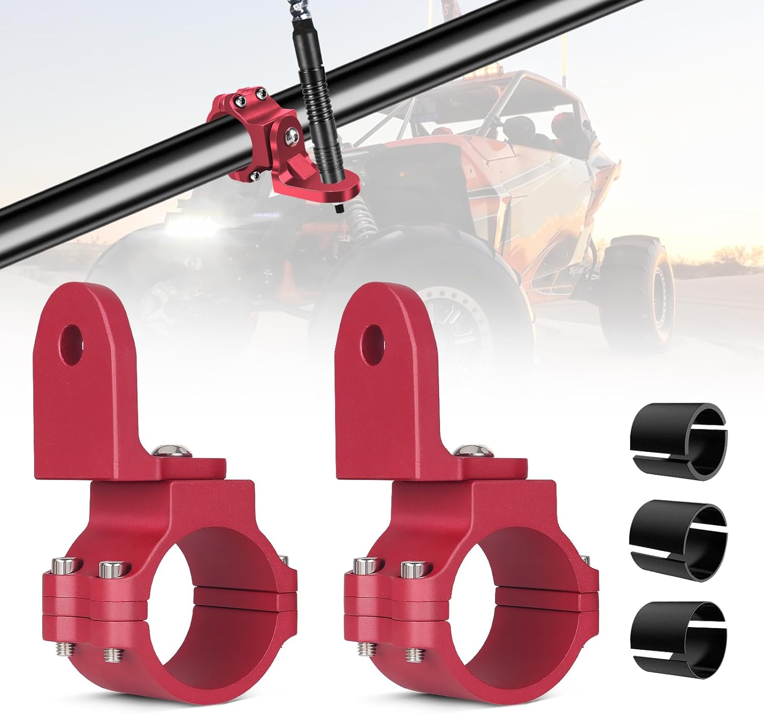 | Included Components | 2 PCS Roll Bar Whip Mount, 3 Pairs Rubber Inserts, Screws |