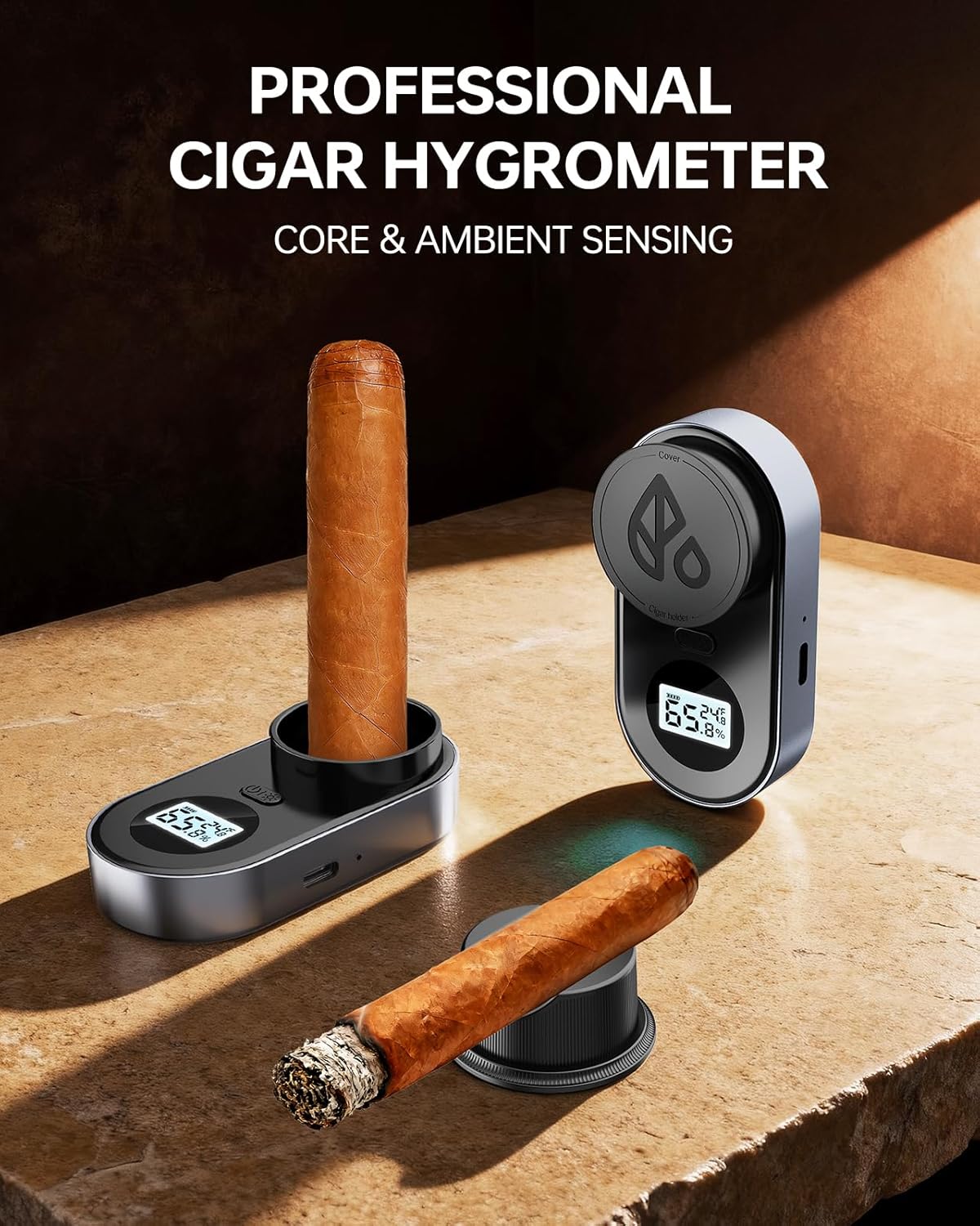 | Included Components | Cigar Hygrometer + PU Leather Bag + USB-A to USB-C Charging Cable. |