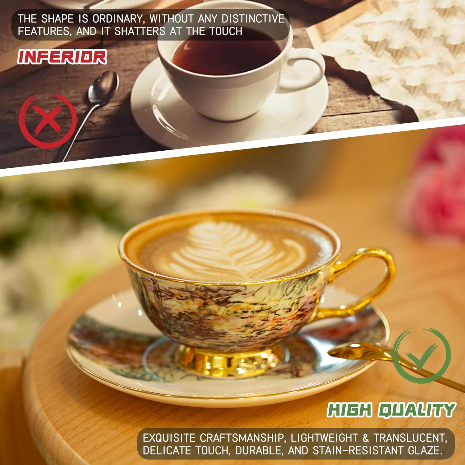 | Material Type | Premium Bone China, 45% Bone Ash, Kaolin & Yak Bone |