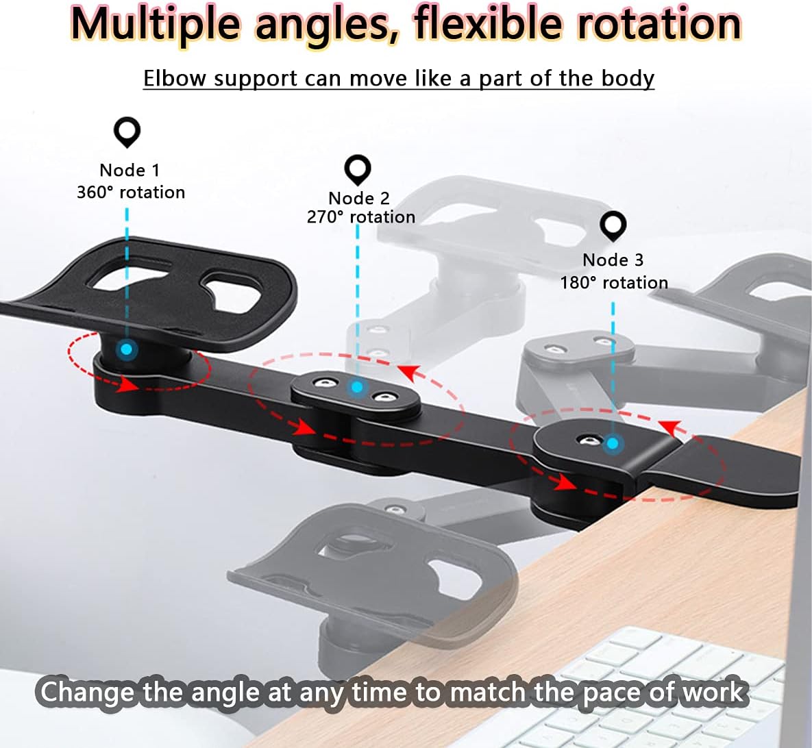 Whether working at home or in an office, using the computer for a long time, and repeatedly using the mouse and keyboard, Over time, you will feel pain in your wrists and shoulders. This is because the arm is suspended for a long time, and the shoulder pressure is too great, which causes physical fatigue; This causes improper sitting posture, backaches, and nearsightedness. This [nounouqi] computer desk arm support frame can well support the arms and elbows that have been suspended for a long time, reduce shoulder pressure, and help guide the body to have a correct sitting posture, making work easier and healthier. Using ergonomic design, the three nodes of 180°+270°+360° can be flexibly rotated, allowing the elbow to follow the movement of the arm and move flexibly, without removing the elbow from the bracket, you can operate from the mouse Go to keyboard operation. Easy office, healthy life. The elbow rest can be moved like a part of the body.
