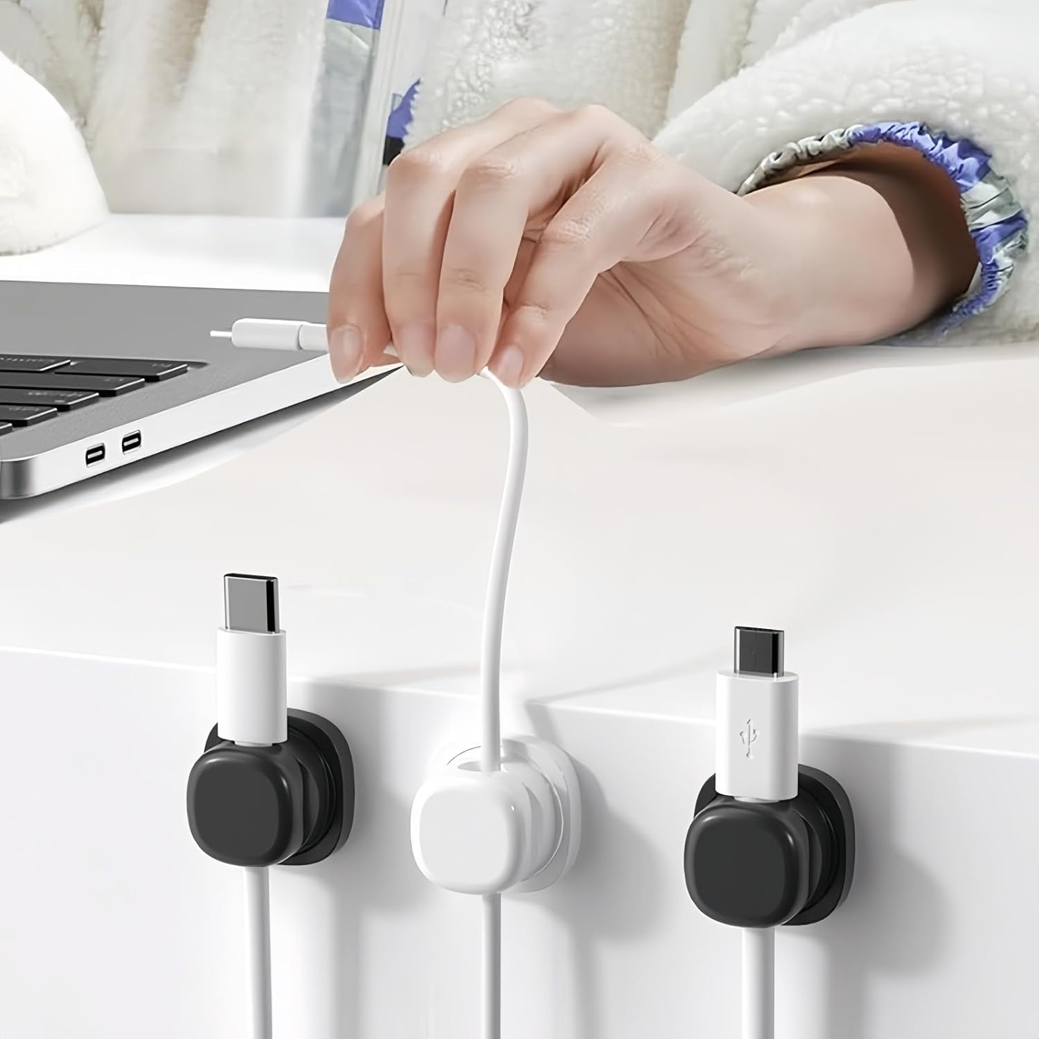 • User-Friendly Rotating Design for Effortless Access: Convenience is key when it comes to daily use. The rotatable feature of this organizer allows you to easily adjust the direction of your cables, ensuring they are always within reach and positioned exactly how you like them. Whether you are at your desk or relaxing on the couch, this Cord Organizer Holder keeps your cables accessible and orderly, making it a simple yet essential tool for any modern lifestyle.