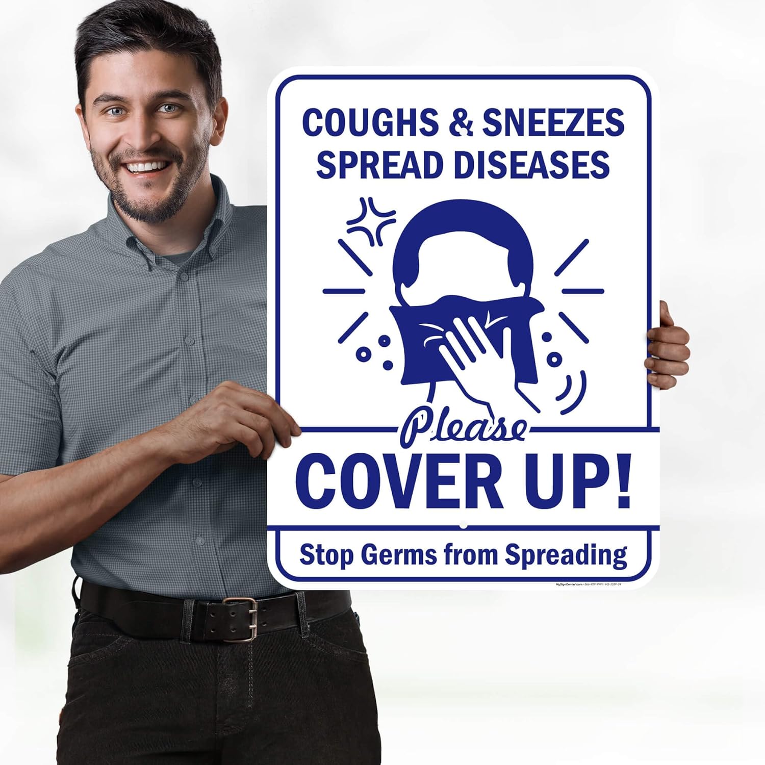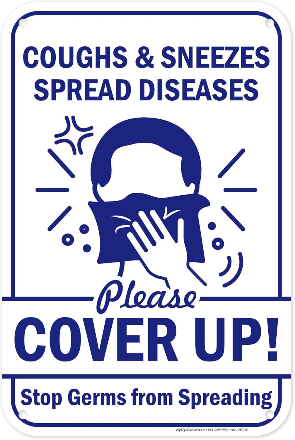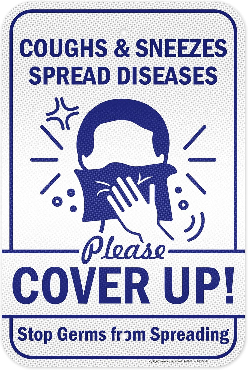 Coughs And Sneezes Spread Please Cover Up! Stop From Spreading Sign, 18"x24" .063 Aluminum, Indoor/Outdoor Use, USA MADE By My Sign Center