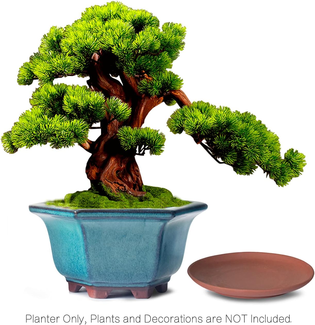 Teal Ceramic Planter. Glaze finish. With drainage hole and detachable saucer MEASUREMENT: 6.4L x 5.5W x 3.3H inches; mouth 5.2 x 4.6 inches; securely packed QUALITY: Durable rich glazed ceramic; Smooth finish. Plants are NOT Included. Suitable for plants such as succulents, bonsai, cactus, aloe vera, and etc. RISK FREE: Covers all defects and damages with no-question-asked return policy