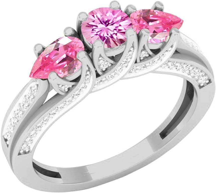 This lovely teardrop engagement ring feature 4 MM center round Lab Created Gemstone & Side Two stone of 5X3 MM each Lab Created Blue sapphire And 0.34 ct. White Diamond in prong setting. All white diamonds are Natural & non-treated, minimum diamond color is I-J & clarity is I2-I3. Our product includes a complimentary jewelry box for safe storage and presentation. SKU # LC2814-160-925