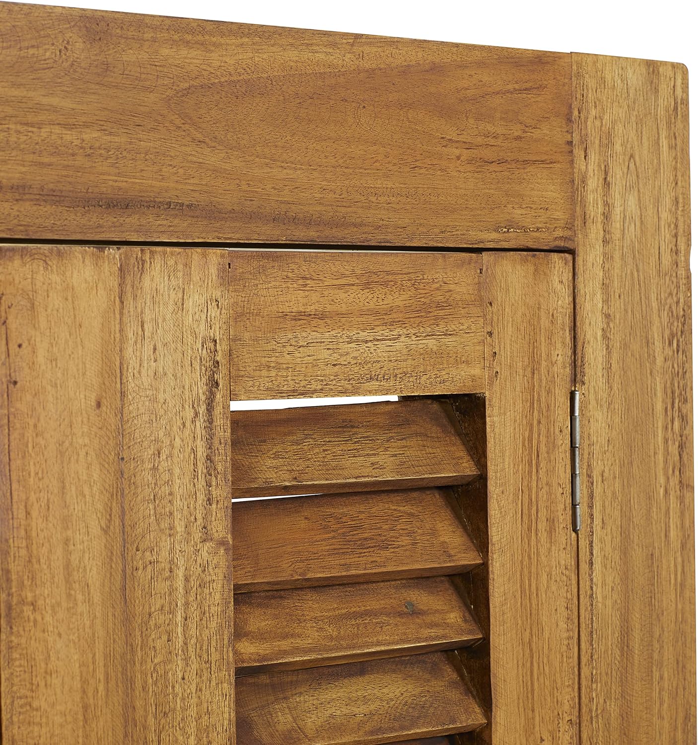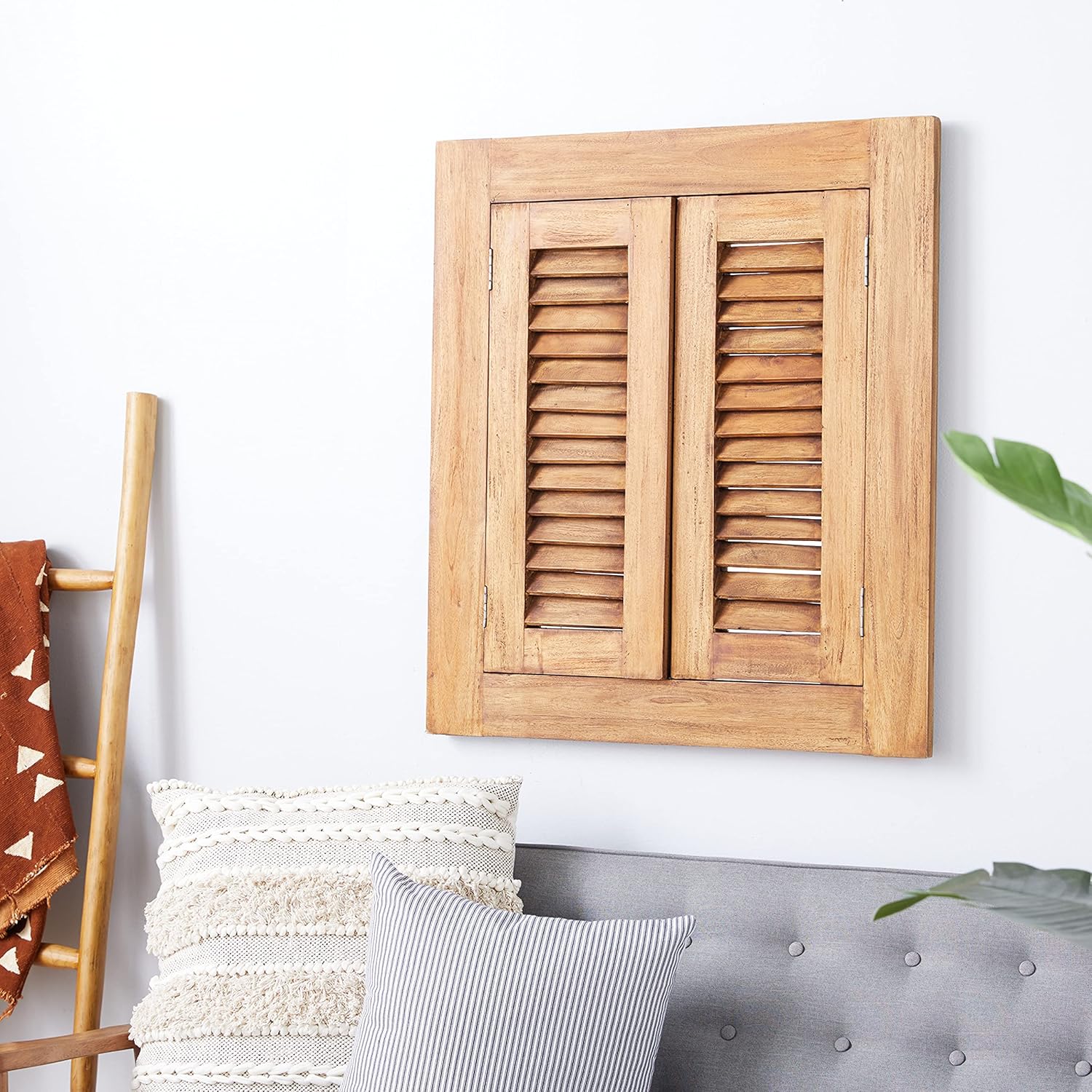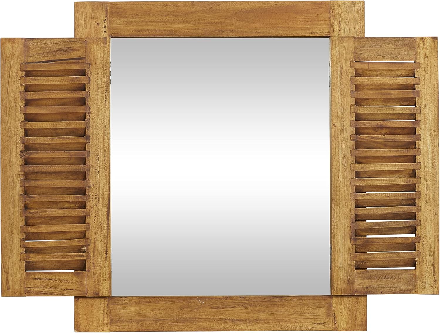 Your boho chic and rustic inspired living space will not be complete without this nostalgic, yet elegant boho chic style rectangular brown wood shutter mirror on your living room walls. The rectangular wooden frame of this wall mirror showcases a light brown finish. It also has an interesting set of swinging shutter doors that you can use to cover or show the highly reflective mirror inside. This will make your boho chic inspired living space much more laid-back at no cost of style. This item comes shipped in one carton. Easy-to-hang feature with its D-ring hardware at the back. Suitable for indoor use only. Made in Indonesia. Rustic Design.