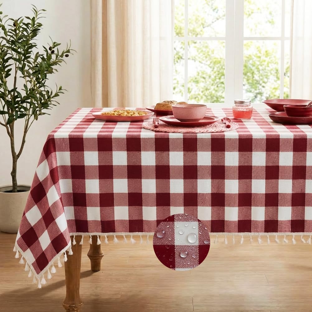 • Waterproof Linen Style Fabric: Crafted from a premium cotton-linen blend, this tablecloth offers natural texture combined with water-resistant performance to protect your table from spills and stains