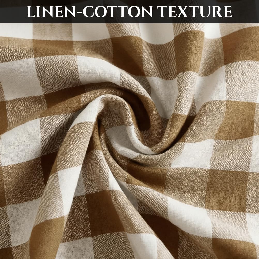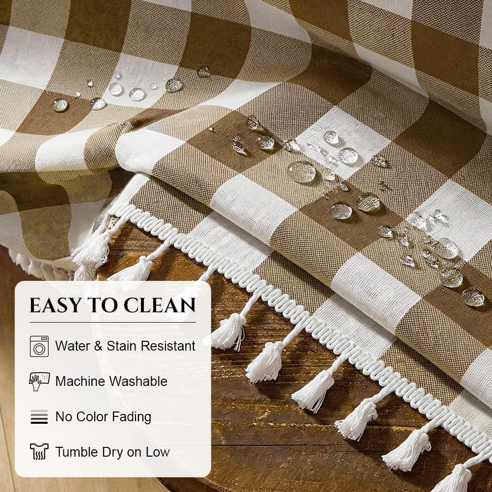 Deep Dream Waterproof Checkered Tablecloth Rectangle, Cotton Linen Gingham Table Cloth with Tassel, Wrinkle Free Buffalo Plaid Table Cover for Picnic Kitchen Dining Room - 55 x 120 Inch, Khaki