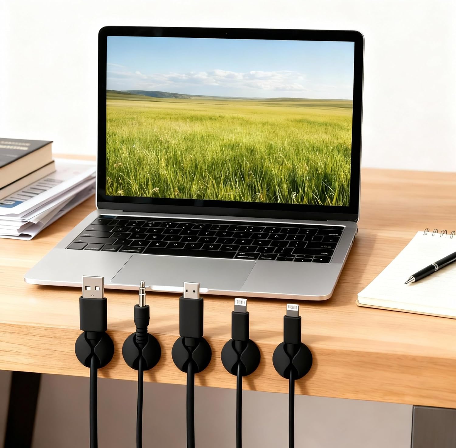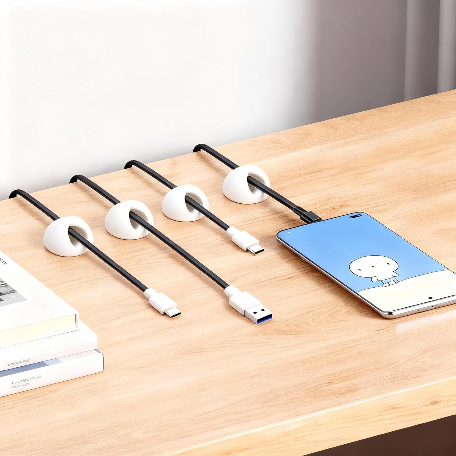 Desk Cord Cable Holder Clips, Adhesive Charging Cord Wire Organizer Keeper Holder for Nightstand, Desk, Office or Mouse with 1 Power Strip Holder