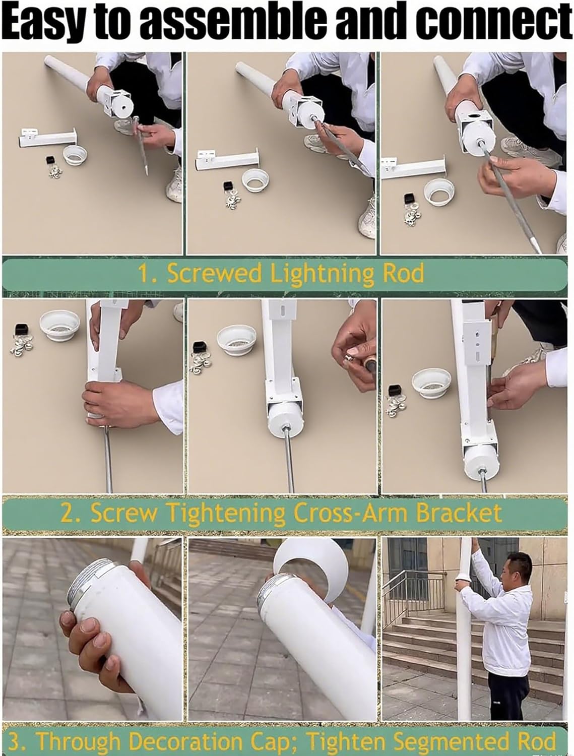 Camera Mount Bracket:Introducing our Steel Security Camera Mounting Pole Post with Cross Arm, the ideal solution for your surveillance needs. Crafted from durable galvanized steel, this universal security camera pole bracket allows for multiple camera installations, ensuring comprehensive coverage in outdoor environments. With adjustable heights ranging from 8.2ft to 19.6ft, this pole is designed to enhance your security program across various locations including schools, yards, patios, walkways, and public spaces.**Package Includes:**- 1 x Security Camera Pole- 1 x Lightning Rod- 1 x Single-Camera Support Bracket- 1 x Dual-Camera Support Bracket- 1 x Camera Bracket- 1 x Ball Tray Bracket- 1 x Foldable Base Cage (with pre-installed underground hardware)- 1 x Decorative Cap- Screw Kit (includes all necessary screws for installation)**Product Features:**- **Versatile Bracket Options:** Select from four different brackets – Single-Camera, Dual-Camera, Camera, and Ball Tray – to create the perfect setup for your surveillance requirements.- **Adjustable Height:** Tailor the height to your specific needs with options from 8.2ft to 19.6ft, optimizing camera positioning for enhanced monitoring.- **Lightning Protection:** Safeguard your equipment with the included lightning rod, offering reliable protection against potential strikes and ensuring uninterrupted surveillance.- **Easy Installation:** The pole’s segmented design and pre-installed foundation hardware enable quick and straightforward setup, whether on soil or concrete surfaces.**Specifications:**- **Material:** Galvanized Steel Pipe- **Height Options:** Available from 8.2ft to 19.6ft, with various configurations for customization.- **Pole Diameters:** Upper Pole: 2.99 in, Lower Pole: 4.48 in- **Bracket Lengths:** Single-Camera: 11.8 in, Dual-Camera: 19.6 in, Ball-Hanging: 11.8 in
