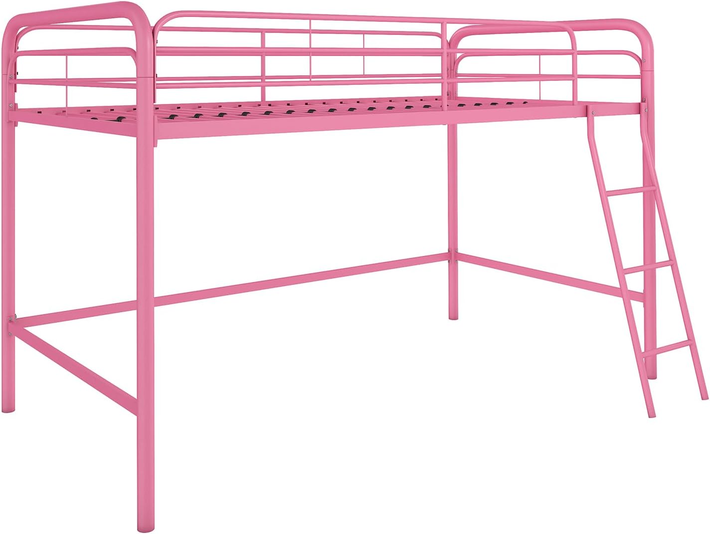 Introducing the DHP Jett Junior Twin Metal Loft Bed in Black, the perfect solution to free up bedroom space while providing a safe and stylish sleeping area for your child. This junior loft bed features a sturdy metal frame with a built-in ladder, making it easy for younger children to climb in and out of bed. The 36.5 inch clearance below the bed offers plenty of space for studying, lounging, playing, and storing belongings. The black metal finish adds a modern touch to any room, while the full-length guardrails on the upper bunk provide added safety and peace of mind. Accommodating a standard 6 inch height twin size mattress (not included), this loft bed ships in one box for easy assembly. Don't sacrifice style for functionality - the DHP Jett Junior Twin Metal Loft Bed combines both to create the perfect sleeping solution for your child. Upgrade your child's bedroom with this space-saving and durable loft bed today.