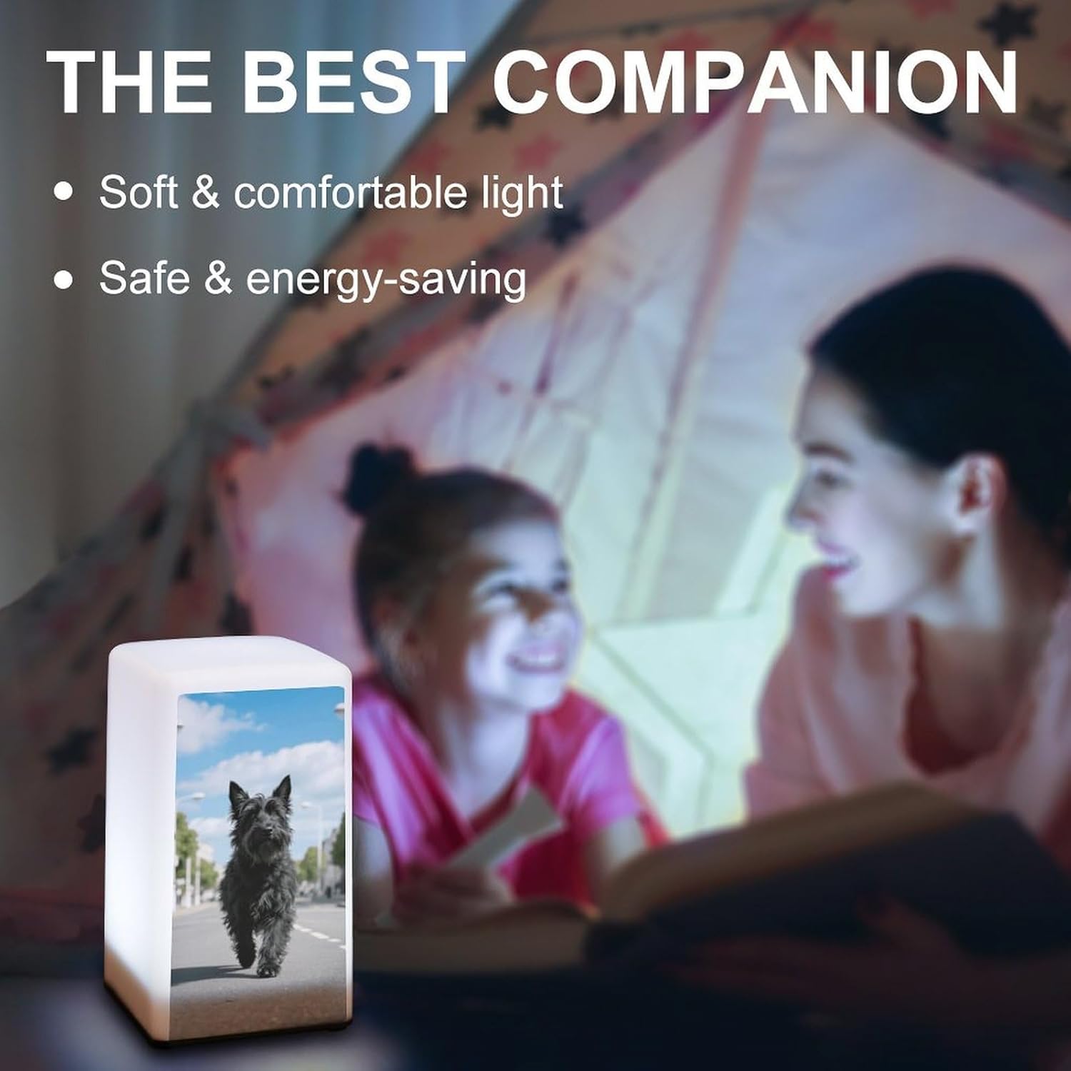 Our A Dog on The Road reading lamp offer the ideal blend of functionality and daily portability, adding sophistication and warmth to your homeCrafted from nice plastic, this night lamp for bedroom,is lightweight, durable, and easy to clean. It emits a soft, warm glow that can guide you through a dark hallway or help you use your phone in bed without disturbing your familyPowered by 3 AAA batteries (batteries not included), this cute end table night light,is suitable for bedrooms, kitchen, bathrooms, bars, and more. Its classic design complements most home styles and makes an ideal gift for family and friends