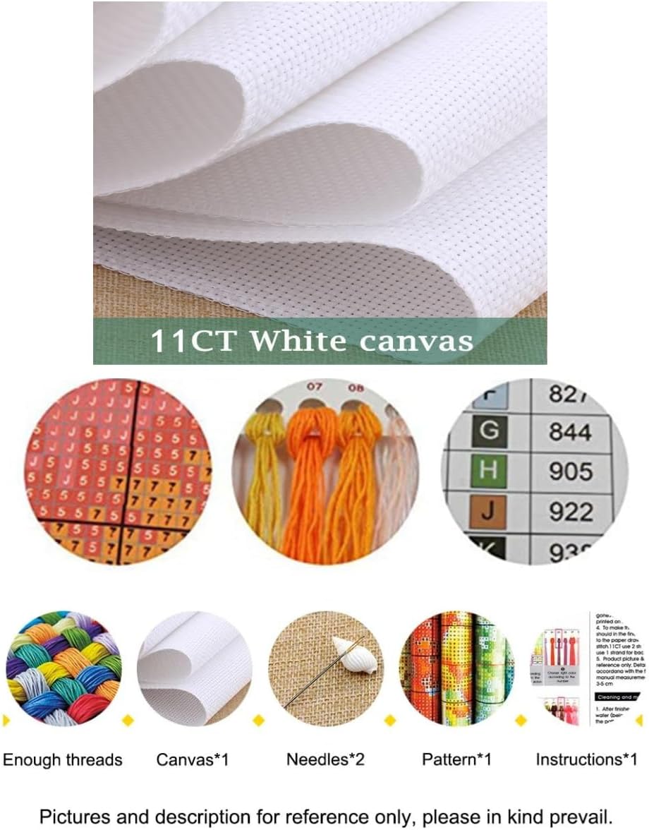 Dimxvean cross-stitch is highly suitable for DIY and home decoration. It is specifically designed for both beginners and experienced craftsmen, This comprehensive set combines themes with high-quality materials to create stunning handicrafts. The package includes the following: * Embroidery fabric × 1 * Embroidery thread ×1 (including pre-sorted threads of all colors) * 4 embroidery needles * Brief explanation ×1 * Drawing ×1 * Sewing scissors × 1 * Thimble ×1 * Threading device ×1 Hint: * Each line corresponds to a number and symbol, and the number and symbol for each line are printed on the canvas. * 11CT indicates 11 stitches per inch of fabric, which is more convenient for visual observation and easier for embroidery. When using 11CT, please use 3-ply thread. Each thread we provide consists of 6 strands, so you need to separate them before use. * Due to lighting and screen factors, there may be slight color differences between the actual product and the picture. We hope you won't mind.