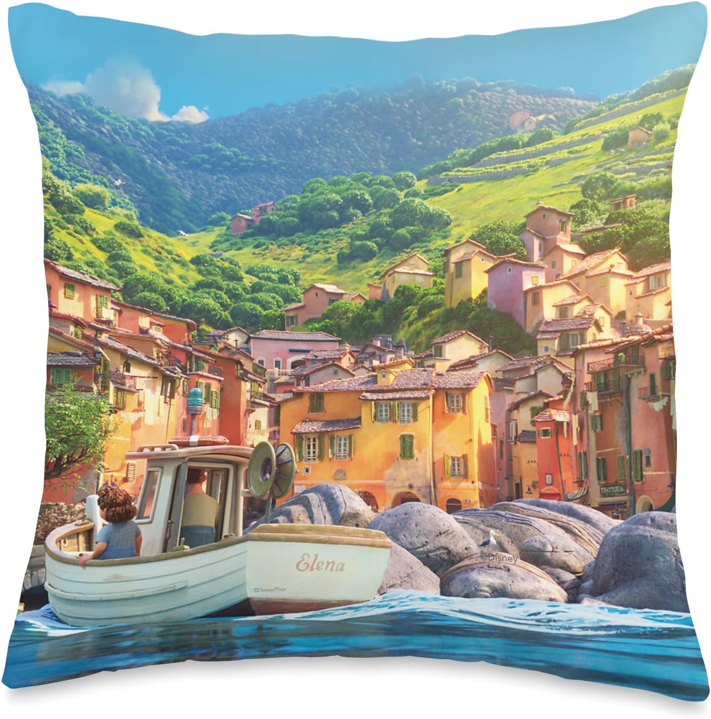 Welcome the Italian Rivera into your day with this stunning Luca design featuring the picturesque seaside town of Portorosso from the Disney/Pixar animated film, Luca. With vibrant coloring inspired by the film, this Luca design is the perfect companion to your gelato, pasta, and Vespa-filled summer. Disney and Pixar’s Luca is a coming of age story about one young boy experiencing an unforgettable summer. Use this versatile Luca tote as a reusable grocery bag, travel bag, and book bag, or give your living space the Pixar touch with this pillow, perfect for a child's bedroom, living room or office.