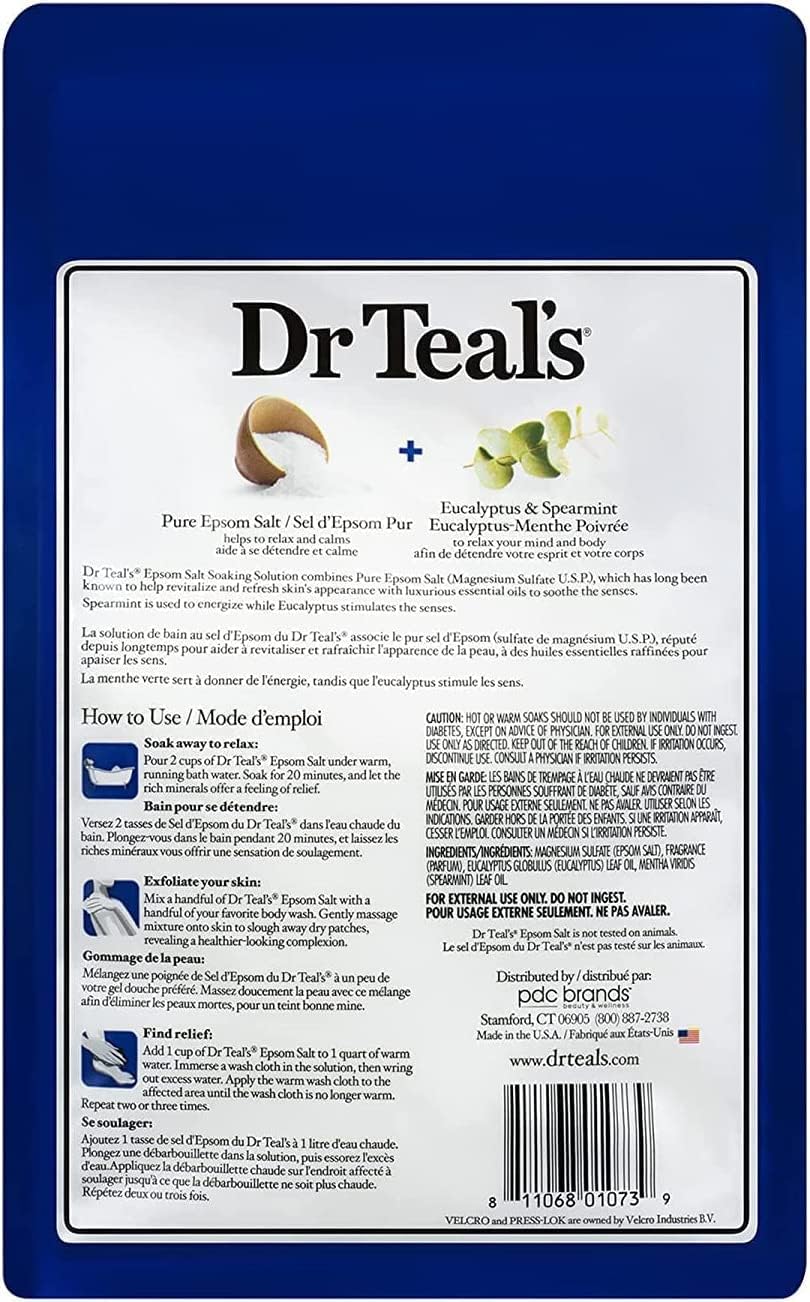 Lavender essence has soothing properties that are known to promote a better night’s sleep. Dr Teal's Hemp Seed Oil Epsom Salt is made with Pure Epsom Salt (Magnesium Sulfate USP) and Hemp Seed Oil to help revitalize tired, achy muscles and deeply moisturize skin and a blend of White Thyme, Cedarwood & Bergamot essential oils to create a soothing experience that helps calm the mind and provide relief from stress. Milk & Honey softens and nourishes skin Ease Aches and Soreness: A Dr Teal’s Epsom Salt soak is an easy, achievable way to ease sore muscles after workouts and help speed up recovery. Dr Teal's Soaking Solution can also be applied directly with a washcloth to a sprain or ache, or mixed with your body wash to add exfoliating properties. Includes one 3 lbs bag of Lavender Epsom Salt, one 3 lbs bag of Hemp Seed Oil Epsom Salt and one 3 lbs bag of Milk & Honey
