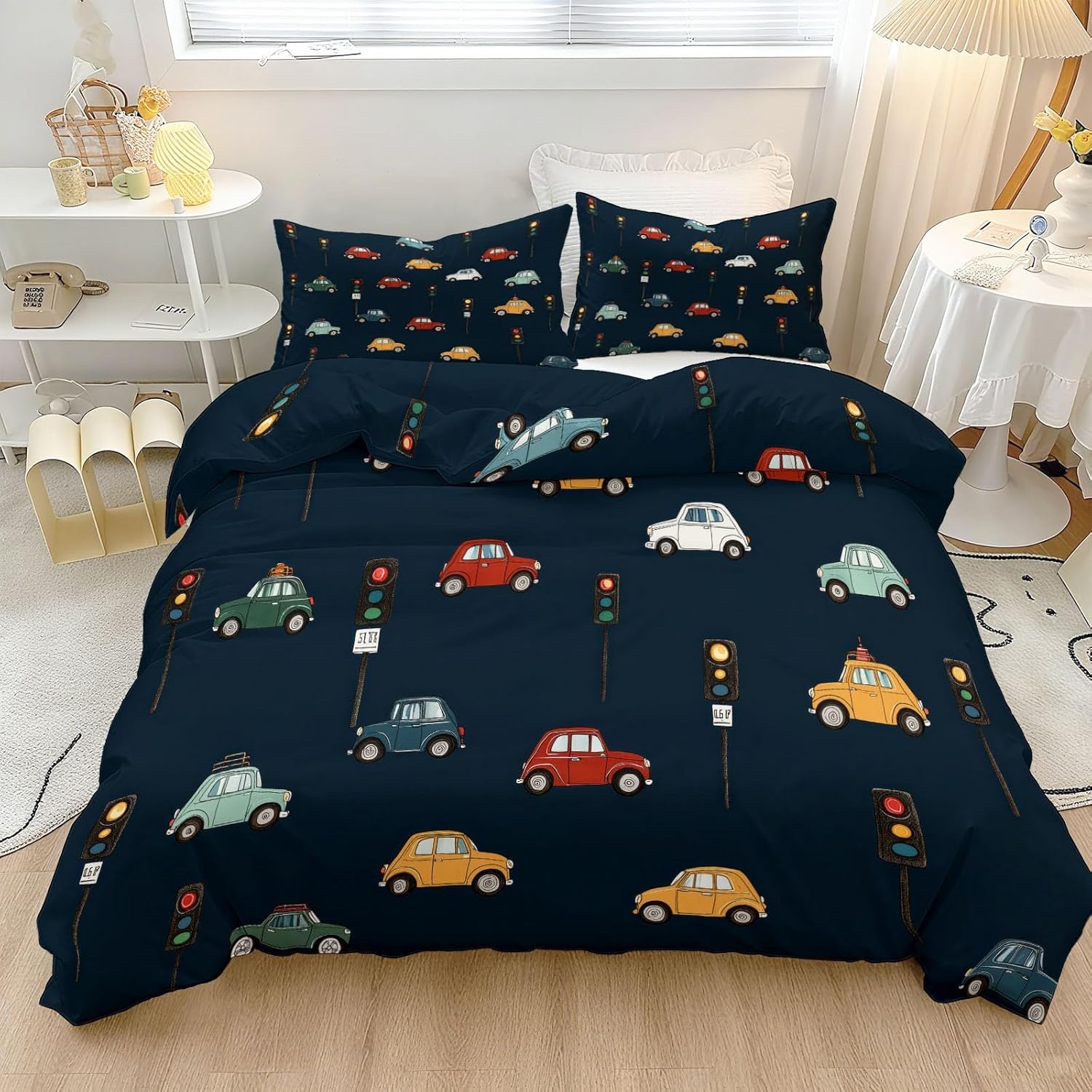 Transform Your Bedroom with Our Brushed Microfiber Duvet Cover Sets Ultra-Soft Brushed Microfiber for Year-Round Comfort Made from soft brushed microfiber, this lightweight duvet cover is warm, gentle on skin, and perfect for year-round comfort Reversible Design with Fade-Resistant Print Featuring the same beautiful pattern on both sides, the reversible duvet cover allows you to refresh your bedroom look effortlessly. Eco-friendly, fade-resistant dyes ensure vibrant colors wash after wash, safe for kids and adults alike Secure Fit with Hidden Zipper & Corner Ties Keep your comforter in place with the hidden zipper closure and 4 corner ties. Compatible with quilts, down, or alternative inserts, this design prevents shifting and maintains a polished, comfortable bed every night Sizes: Twin: 1 duvet cover (68" x 90") + 2 pillowcases (20" x 26") Full: 1 duvet cover (80" x 90") + 2 pillowcases (20" x 26") Queen: 1 duvet cover (90" x 90") + 2 pillowcases (20" x 26") King: 1 duvet cover (104" x 90") + 2 pillowcases (20" x 36") Easy Care & Long-Lasting Durability Machine washable and resistant to shrinking, fading, and tearing, this duvet cover is low-maintenance. Tumble dry on low, use a warm iron if needed, and enjoy a fresh, stylish bedroom with minimal effort Versatile Use & Ideal Gift Choice Perfect for children’s rooms, guest rooms, dorms, or master bedrooms. This duvet cover set also makes a thoughtful gift for holidays, housewarmings, or special occasions, ensuring comfort, style, and durability in every home Customer Satisfaction & Support We stand behind our products. If you encounter any issues with your duvet cover set, our friendly customer service team is ready to assist, offering peace of mind and a reliable shopping experience