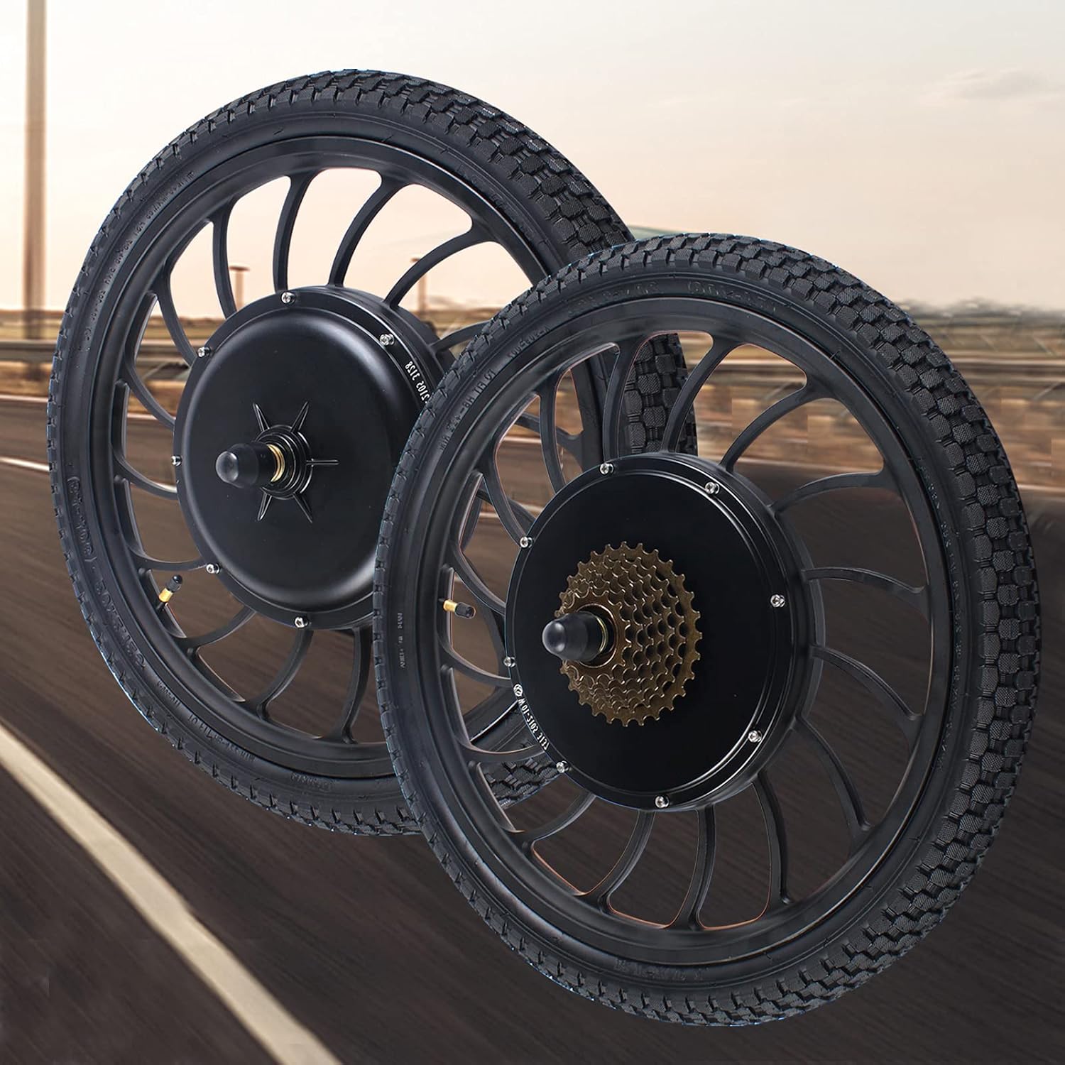 Motor Specification:High Motor Efficiency: max 88.7% (Save Power)Torque: max torque 35 N.m.RPM: max 420Speed: 0-40km/hSupport standard 6-hole type disc brakeFront Integral WheelWeight:8.5kgAvailable Wheel Tire Size: 20''x2.125Package: 1*wheel