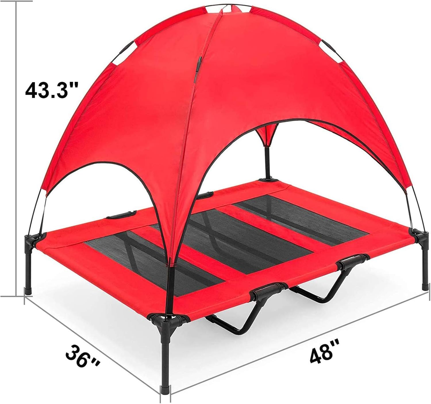 Elevated Dog Bed with Removable Canopy w/Convenient Carrying Bag Indoor Shade 1680D Portable Raised Oxford Fabric Outdoor Cooling Pet Cat Bed Tent for Camping Sturdy Steel Frame Description: Our elevated pet cot removable canopy provides your pets a place to have fun and helps them to enjoy a cooler summer. The elevated design can help the air circulation and prevent your pets from lying down on the hard ground. The canopy can block sunlight and rain effectively to provide them with full shade in hot summer, which is very suitable for outdoor use. In addition, its waterproof surface can be disassembled and is very easy to clean and maintain. Features: 1680D Oxford Fabric bed cloth. 190T PU Covering Polyester Taffeta Canopy for full shade and protection! Breathable textilene mesh allows your buddies' warm body heat to escape from beneath the pet thus contributing to keeping them cool while they lounge around in the heat.The breathable mesh center. Sturdy powder-coated steel frame with four stable non-skid feet. Elevated cot-style design elevates your pet off the ground,allowing the air to flow all around them,offers joint-relief for your pets that struggle with lying on a hard ground as well. Simple, tool-free assembly,assembles and disassembles in minutes. Easy cleaning! Wipe with damp cloth or even hosing it off outdoors. Whether it's for a weekend at beach, or for a camping trips, our lightweight, easily portable bed will make your cat or dog extremely happy wherever you go. Plus, it comes with its own handy little carry bag for maximum convenience! Specifications: Color: Grey, Brown, Red Material: Oxford fabric + PU+ Steel Middle Size: 30"L x 24"W x 30"H Large size: 36"L x 30"W x 35.5"H Extra-large size: 48"L x 36"W x 43.3"H Package includes: 1X Elevated Pet Cot with Canopy+1X 210D Oxford Travel Bag