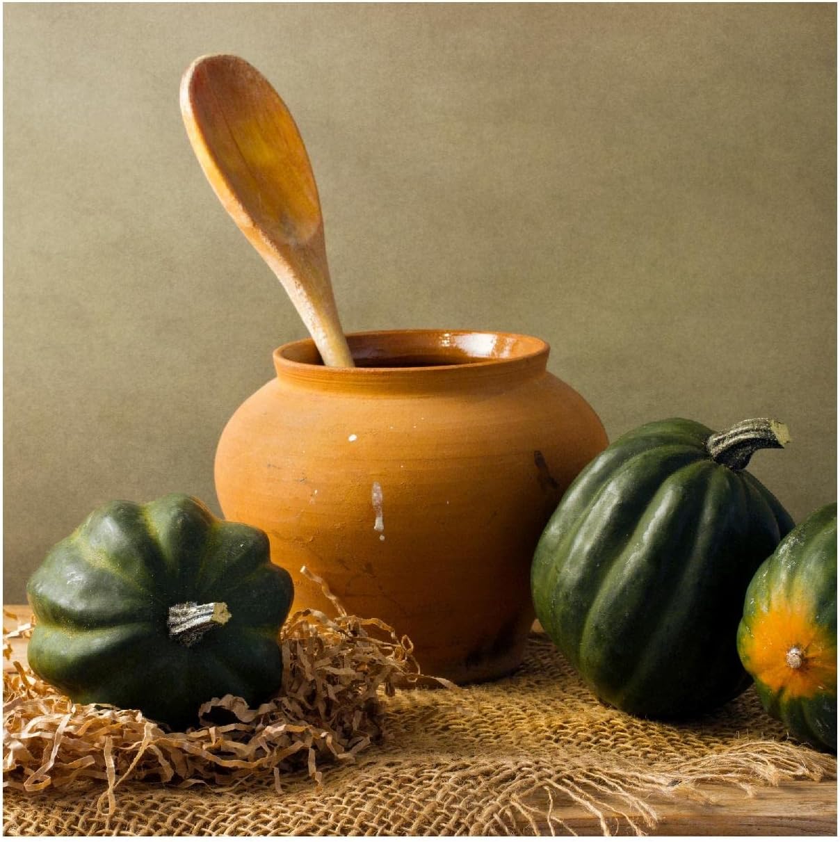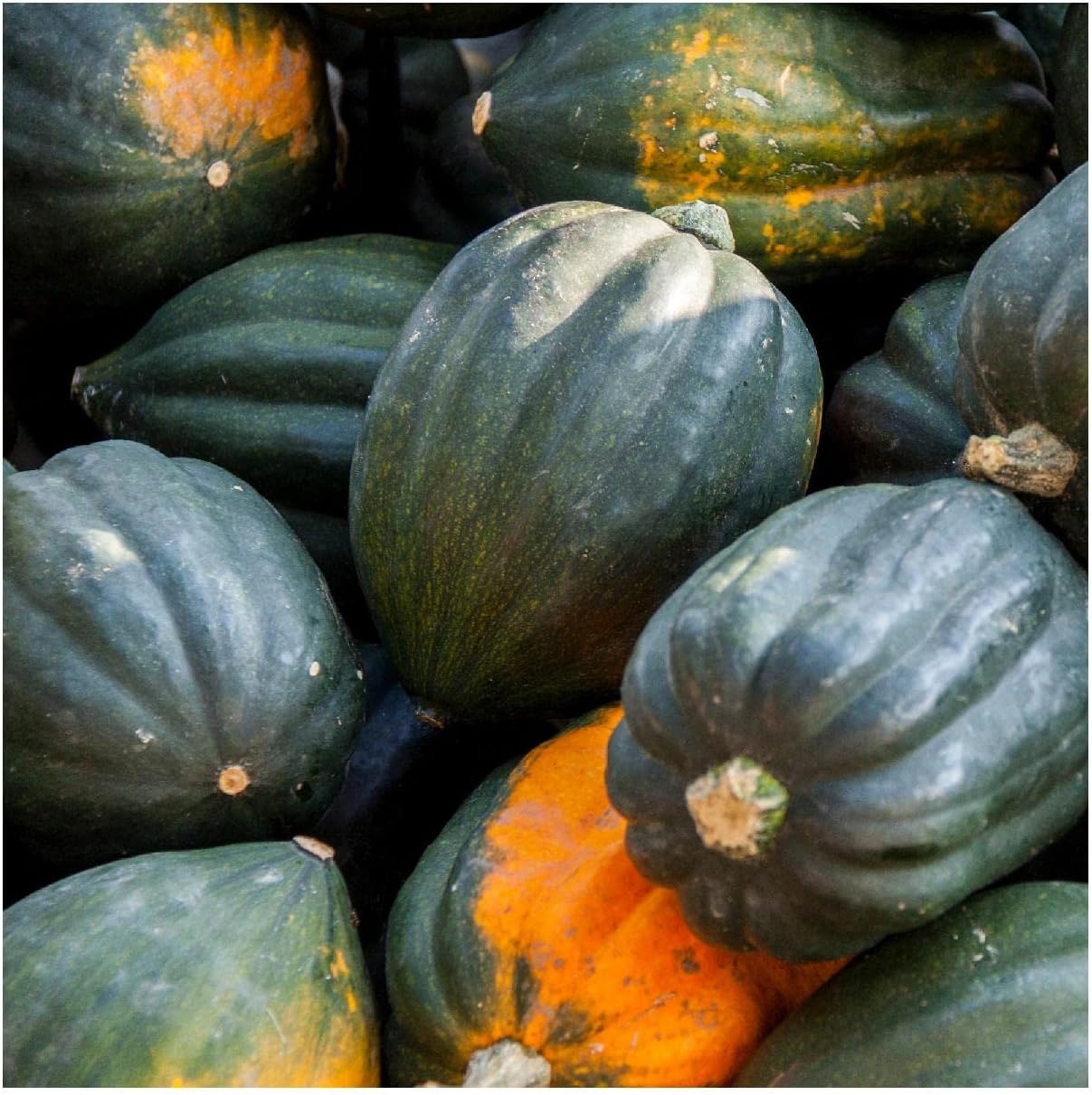 Vigorous vines of the Table Queen Acorn Squash produce medium-sized dark olive-green acorn-shaped deeply-ribbed squash that are about 5" across and weigh 1.5 pounds. They are productive and compact, taking just 85 days until harvest. The sweet, dry, golden-yellow flesh is excellent for baking and keeps well.