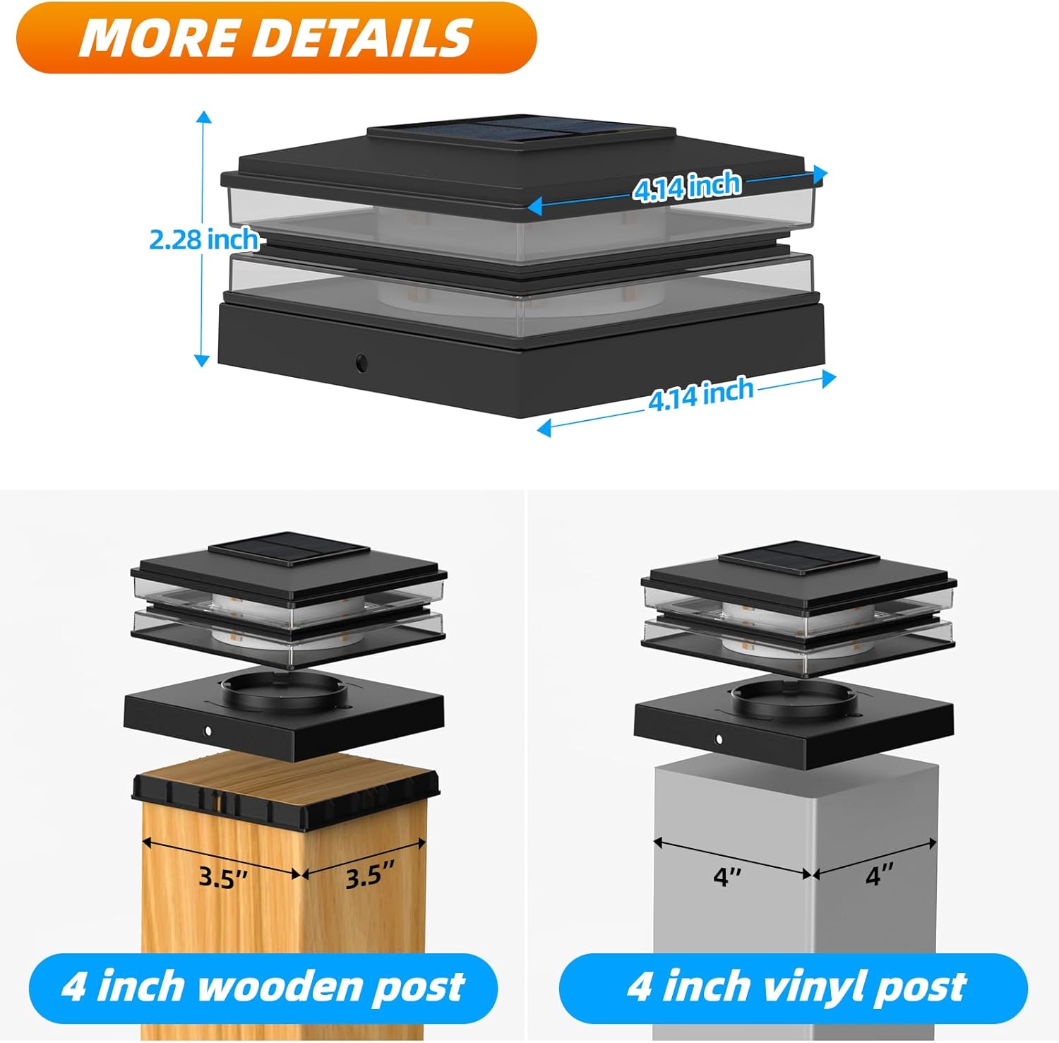 Illuminate your outdoor spaces with this sleek and stylish solar post cap light. Designed for elegance and functionality, it features a modern square silhouette with a black finish, complemented by clear panels that house powerful LED lights. By day, its built-in solar panel charges effortlessly in sunlight, and by night, it transforms into a glowing centerpiece, radiating bright, even light to enhance your deck, fence posts, or garden. With energy efficiency and a weather-resistant build, this light is perfect for adding ambiance and safety to your outdoor living spaces, all while being eco-friendly and maintenance-free.