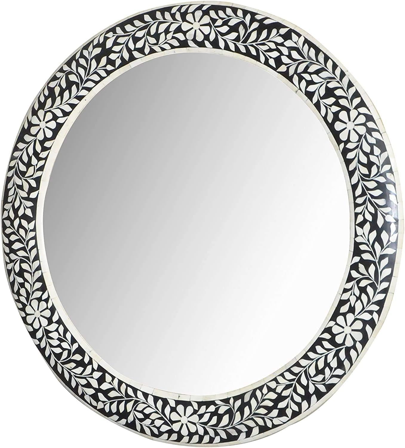 Bone Inlay Mirror Frame is a great way to open up space and bring lightness to any room as well as a fantastic way to add style and finesse. Fairdeal Handicrafts offers you practical storage solutions through stylish statement pieces. This Inlay Frame is an exquisite example of Perfect Indian bone inlay design and hand carved camel bone is used to create beautiful floral patterns. Available in different shapes: Round, Square, Arch, Full Size Arch, Rectangle, and Hexagon. Excellent in any living room, bedroom, bathroom, entryway, dining room, or kitchen. This version of 24” H x 24” W x 2” D is sure to fit in with your best look, creating an eye-catching display of pure. ion. The shape will be a great way to break up the straight lines of a gallery display or just the right size for an entryway. Issue on colour resolution / pattern Please bear in mind that a photo may slightly different from the actual item in terms of colour due to the lighting during photo shooting or the monitor’s display. We have made every effort to display, as accurately as possible, the colours of our products that appear at the website. However, as the actual colours you see will depend on your monitor, we cannot guarantee that your monitor’s display of any colour will be accurate. The position of pattern/design may slightly different from what you see. If you have any doubt about our products,please contact us before buying the product. Mirror Policy : We do not include the price of Glass Mirror in the Bone Inlay Mirror Frame. We are providing you with a “Free” glass mirror. Mirror being a fragile item, is not covered under the insurance policy, so if any damage incurred during the transit is not accountable to us. Apart from that, any other damage is covered under the shipping policy. We ensure that the quality of our packaging minimises any breakage or damage to the product.