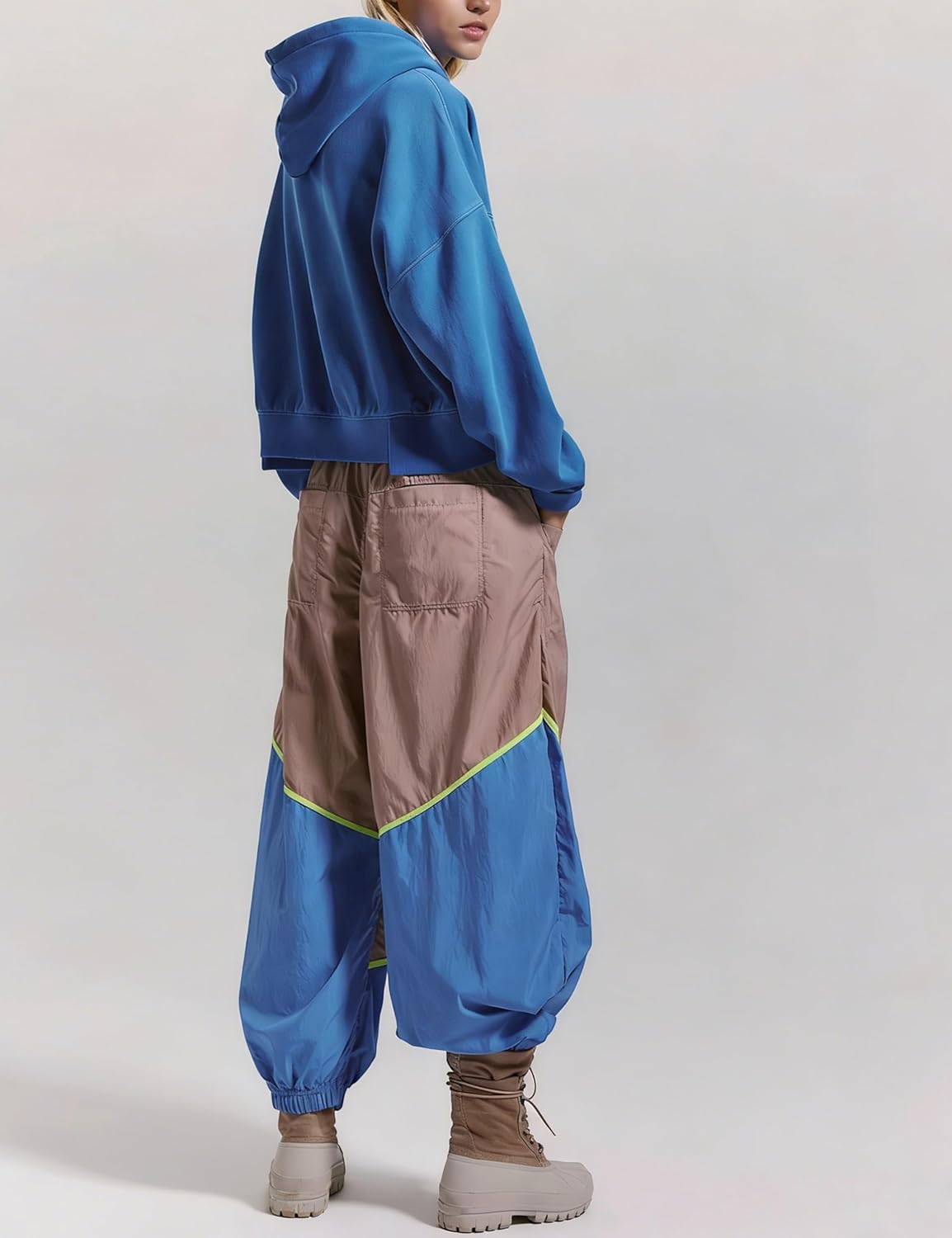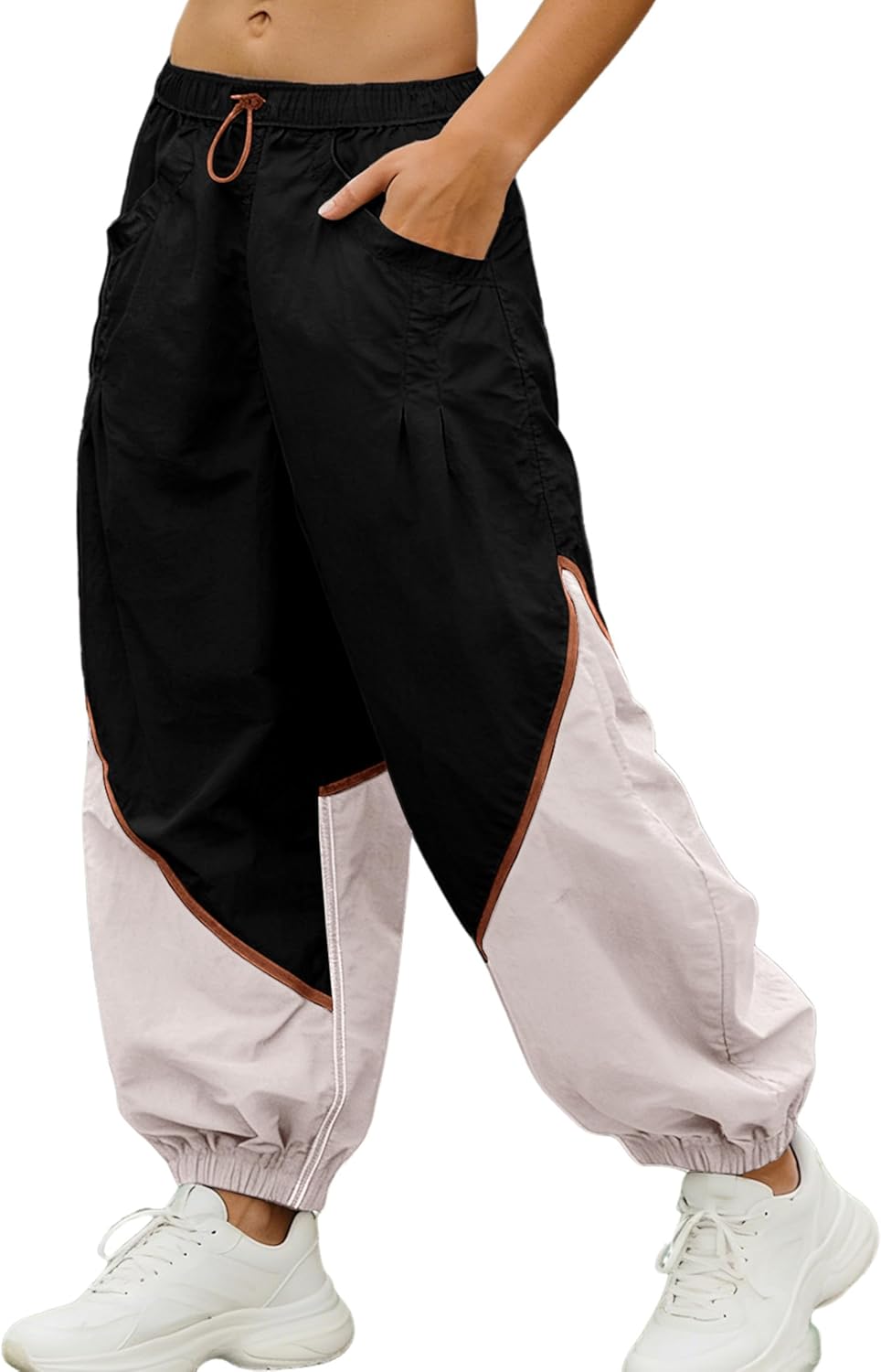 | Style Name | Women's Slouchy Nylon Pants Colorblock Relaxed Ankle |